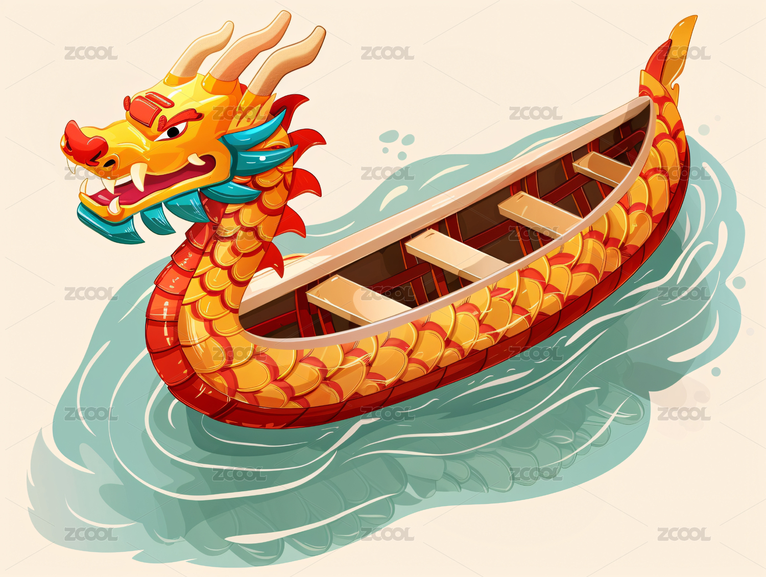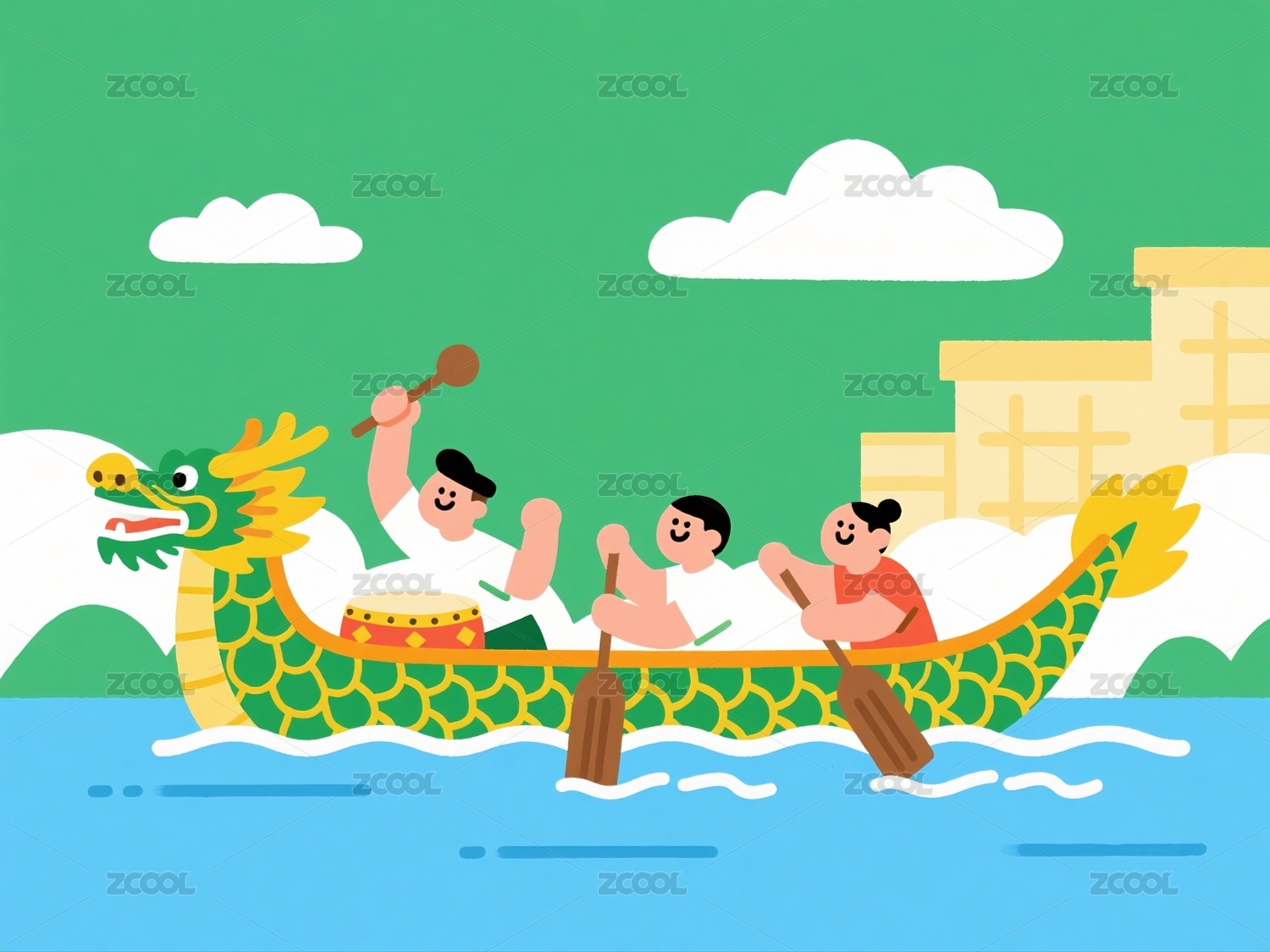 古风 人物 龙舟 划船 民俗 传统 节日 端午 船桨 水波 龙头 服饰 划船者 图案 船只