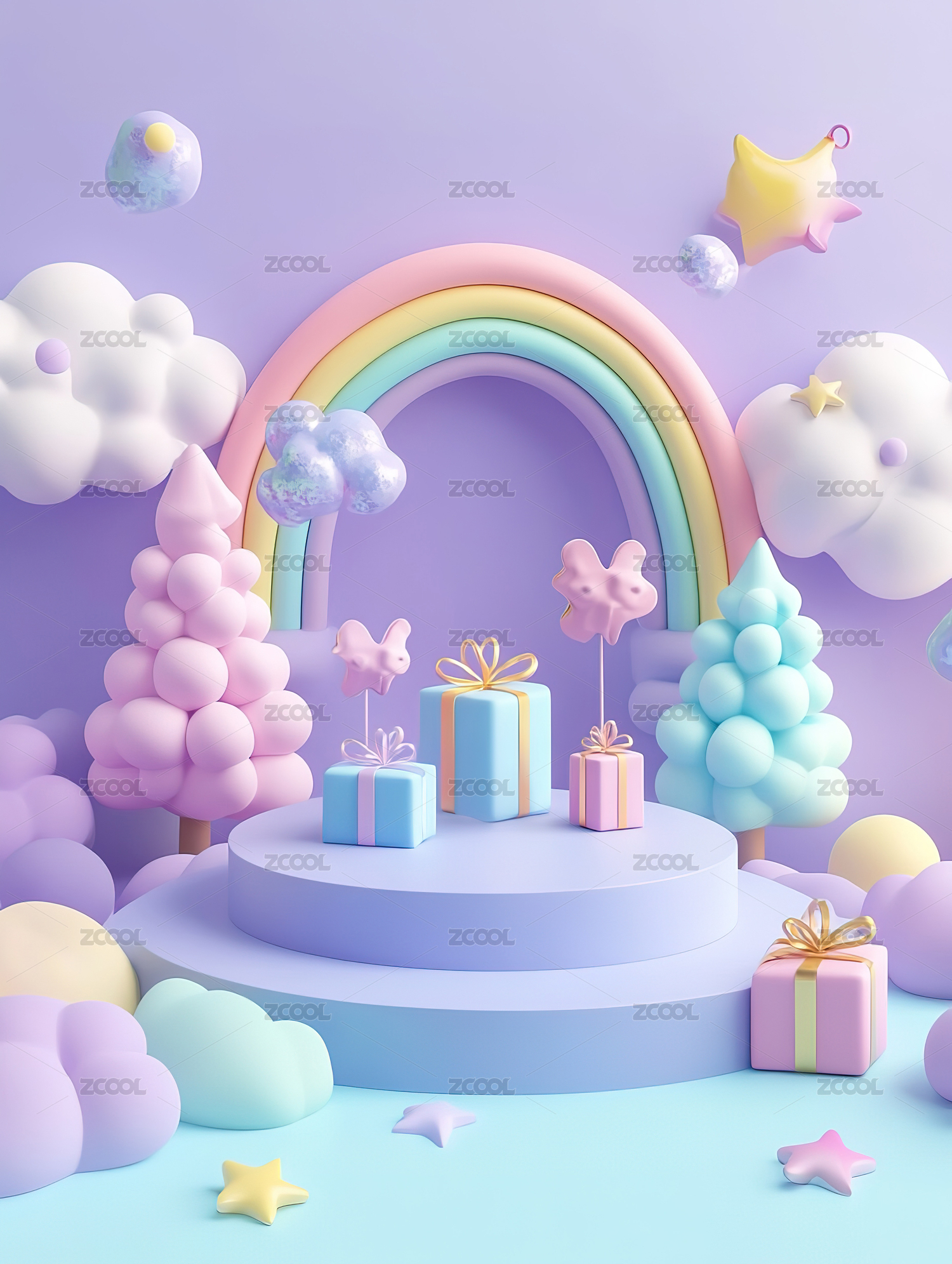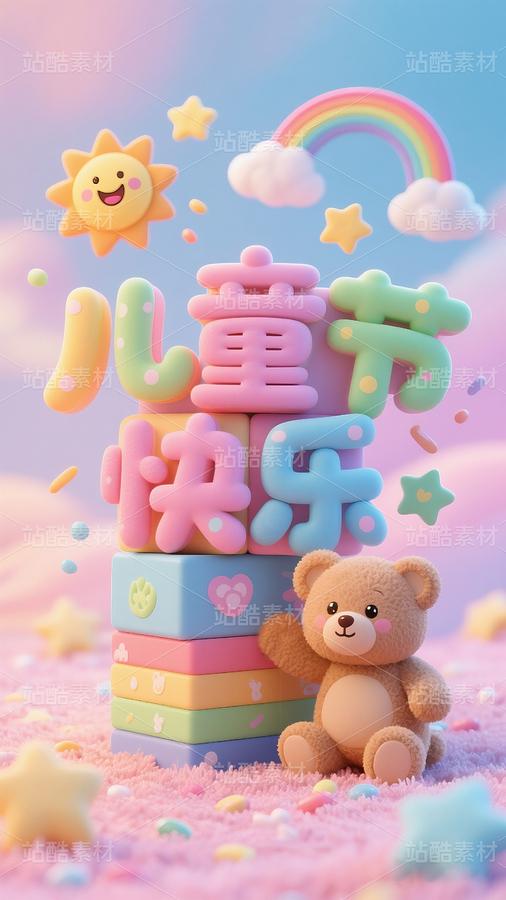 可爱,文字,儿童节快乐,3D立体字,胖嘟嘟,彩虹,积木块,堆叠而成,棉花糖,积木,六一儿童节,