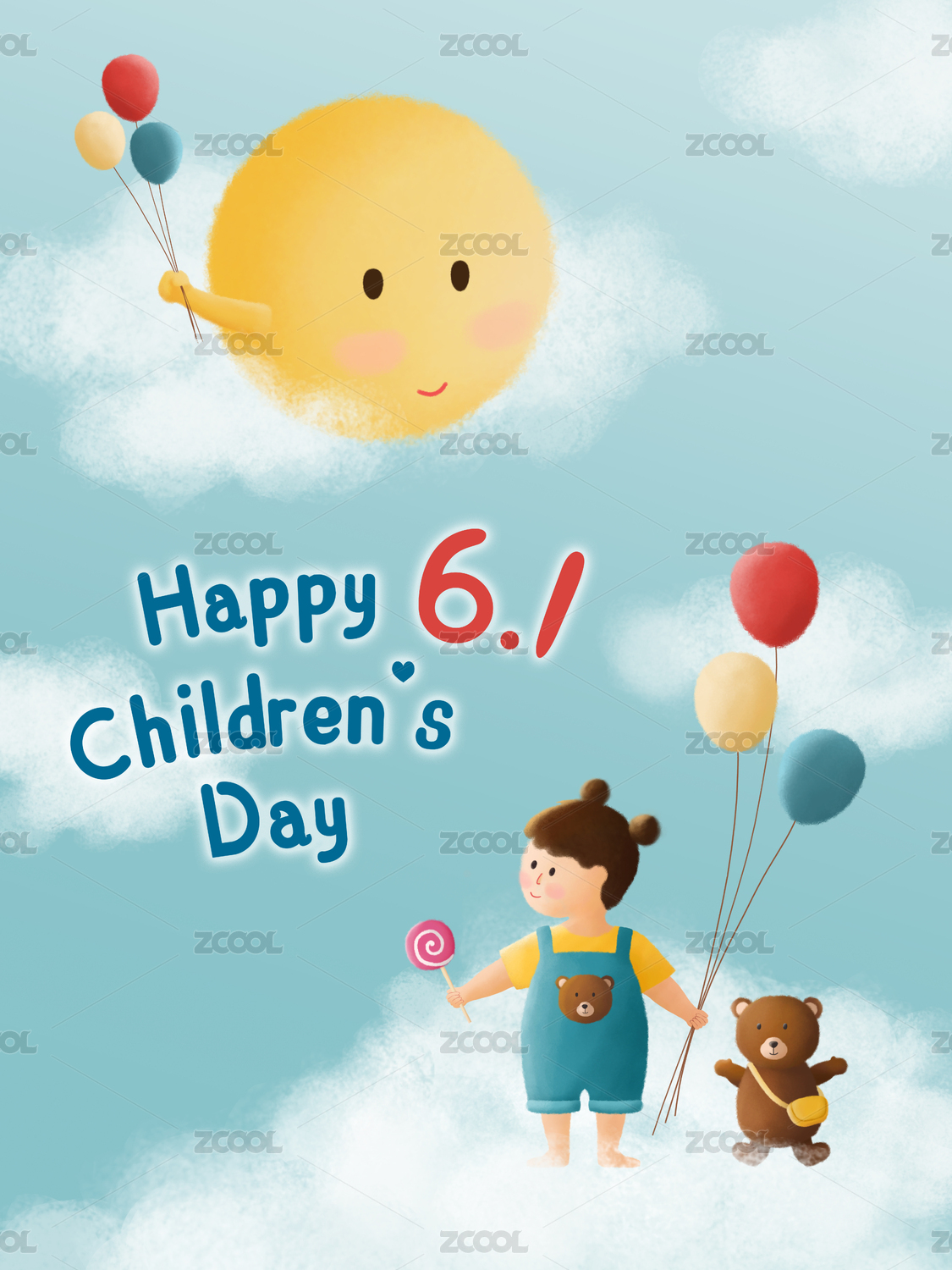 旅行社,旅游,宣传海报,活泼鲜艳,夏日气息,Happy Children's Day,六一,六一儿童节,儿童节,字体设计,气球,彩虹