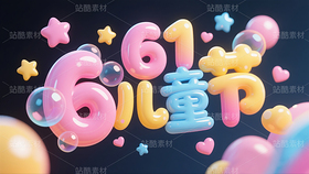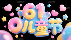 儿童节,圆润泡泡糖果渐变填充立体字,小星星,爱心