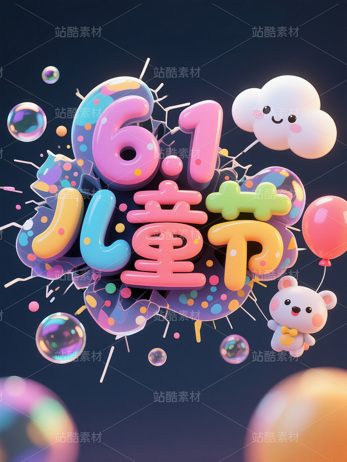 文字,儿童节,泡泡,立体字,圆润饱满,字体轮廓,高光,反光效果,糖果,渐变填充,充气泡泡,立体,小星星,爱心