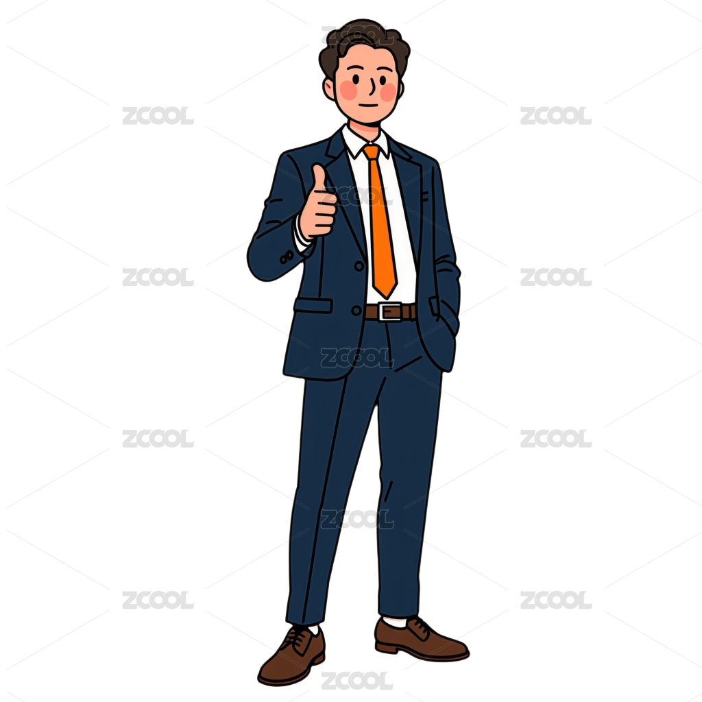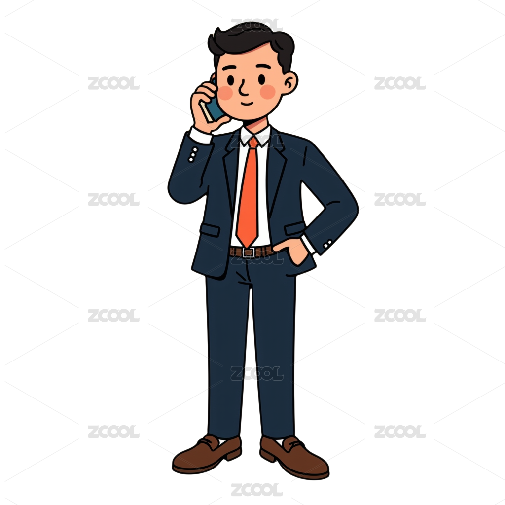 一位穿着深蓝色西服系着领带的职场男人 手绘插画