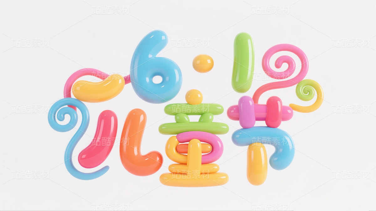 儿童节,圆润泡泡糖果渐变填充立体字,小星星,爱心