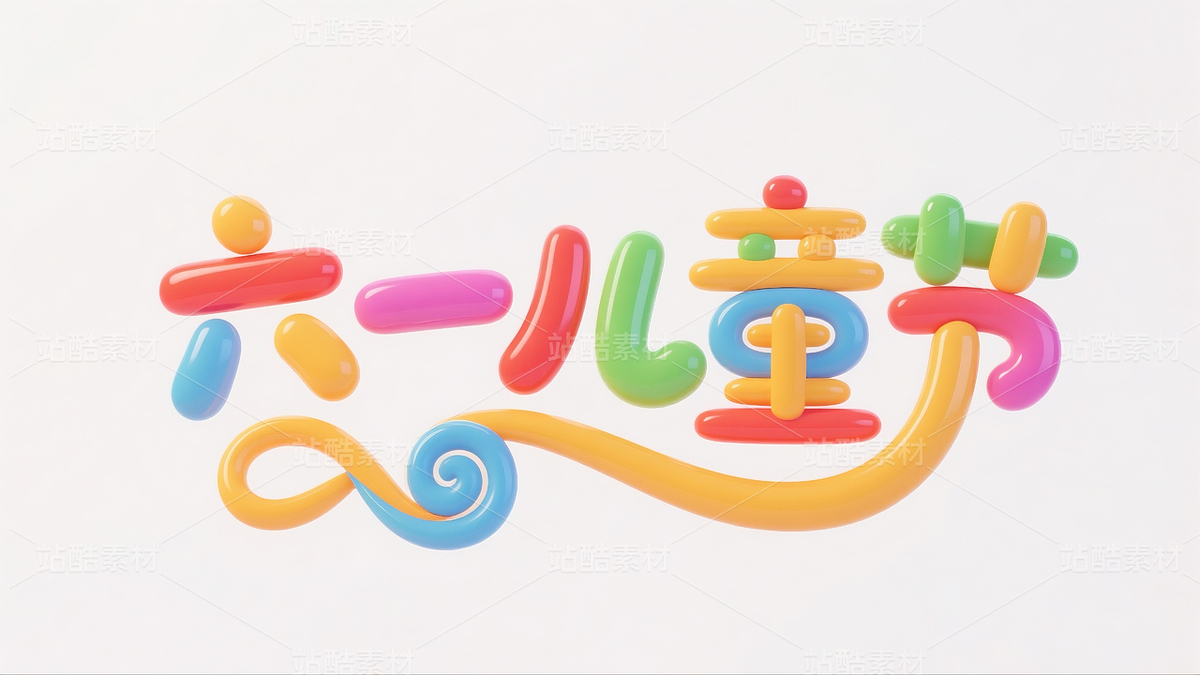 字体设计,六一儿童节,螺旋,卡通,童趣,镭射,可爱果冻,彩色字体,色彩鲜艳