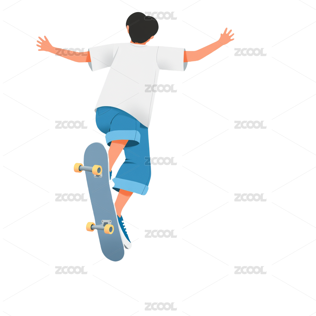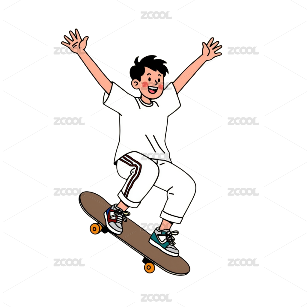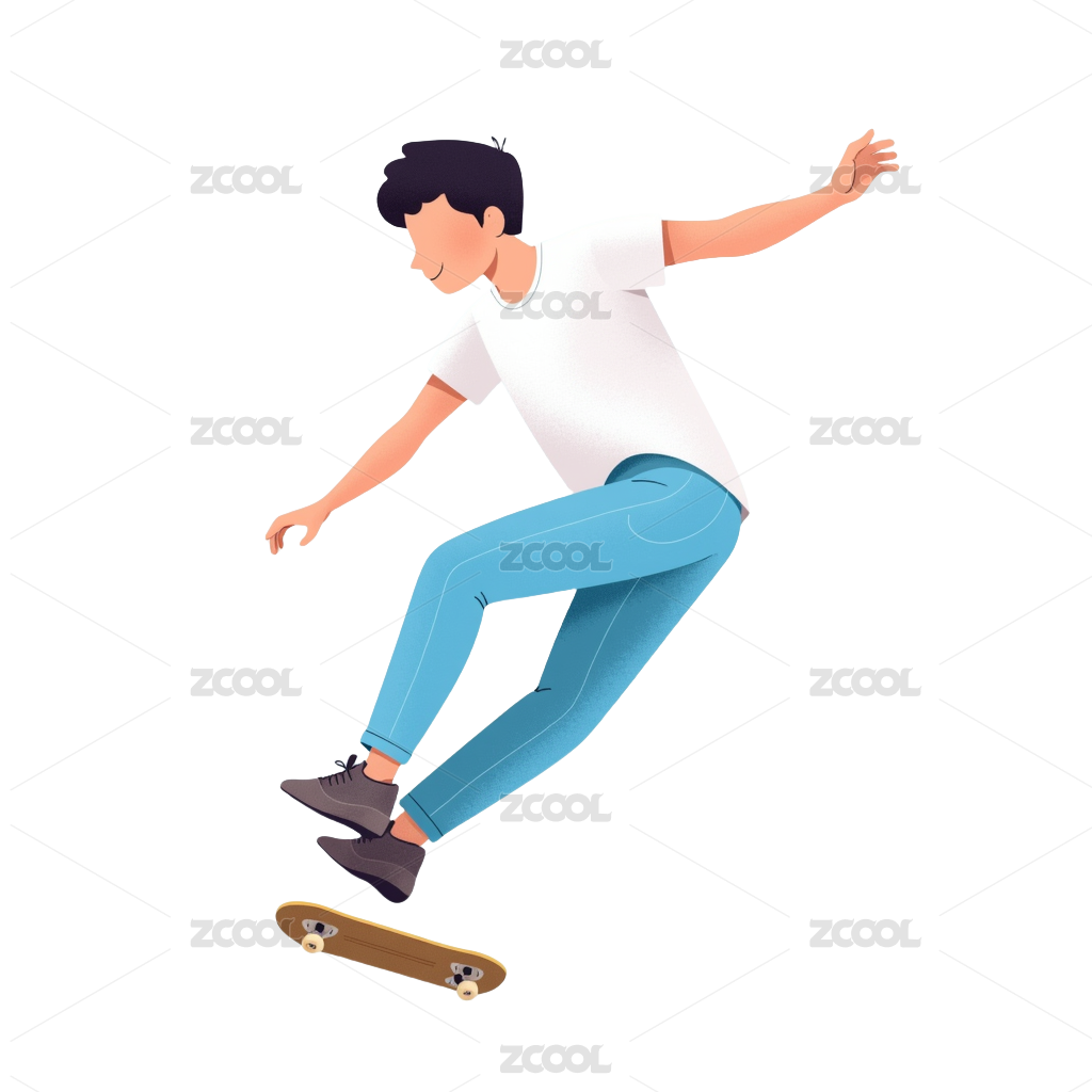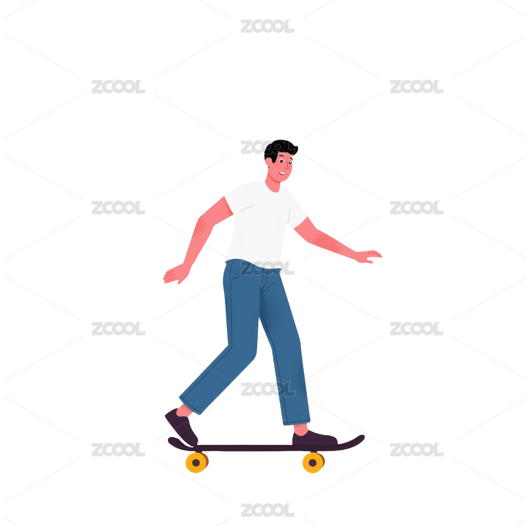 扁平风格美式时尚穿搭滑板少年插画