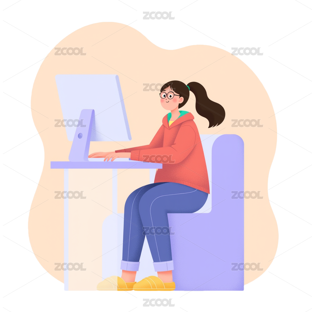 在家办公卡通插画