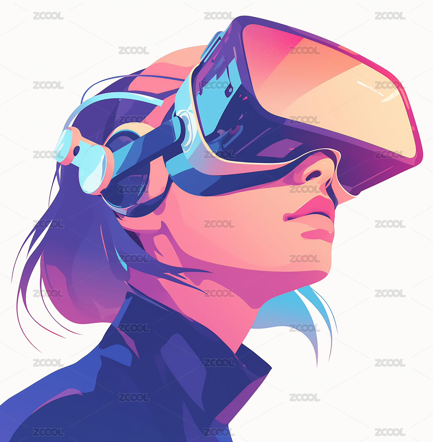戴着VR眼镜女性炫彩方块潮流插画