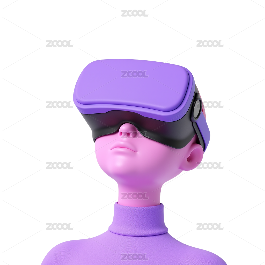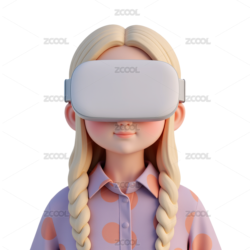 3D卡通女孩戴着VR眼镜