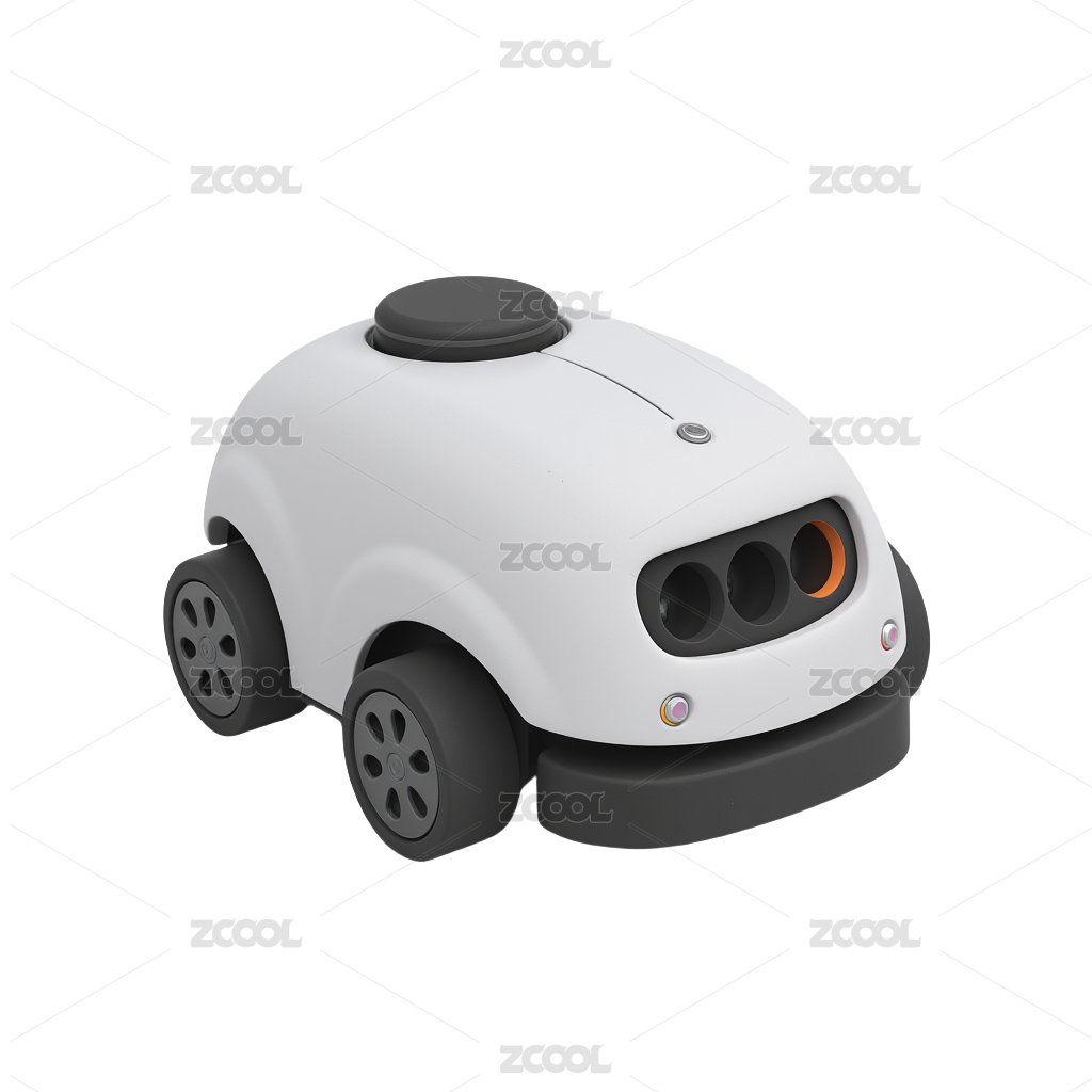 未来科技机器人白色车身配黑色轮胎车头有蓝色和黄色灯光