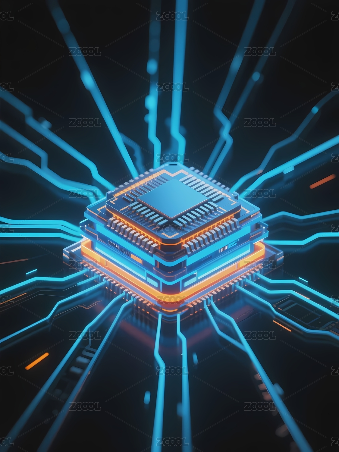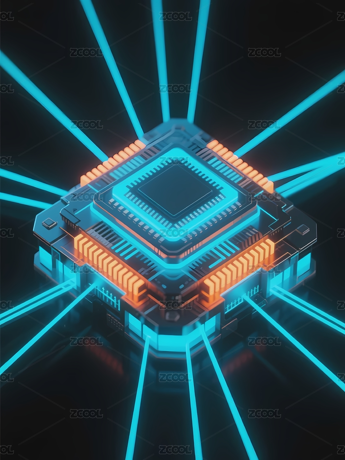 科技感芯片与光束交汇图