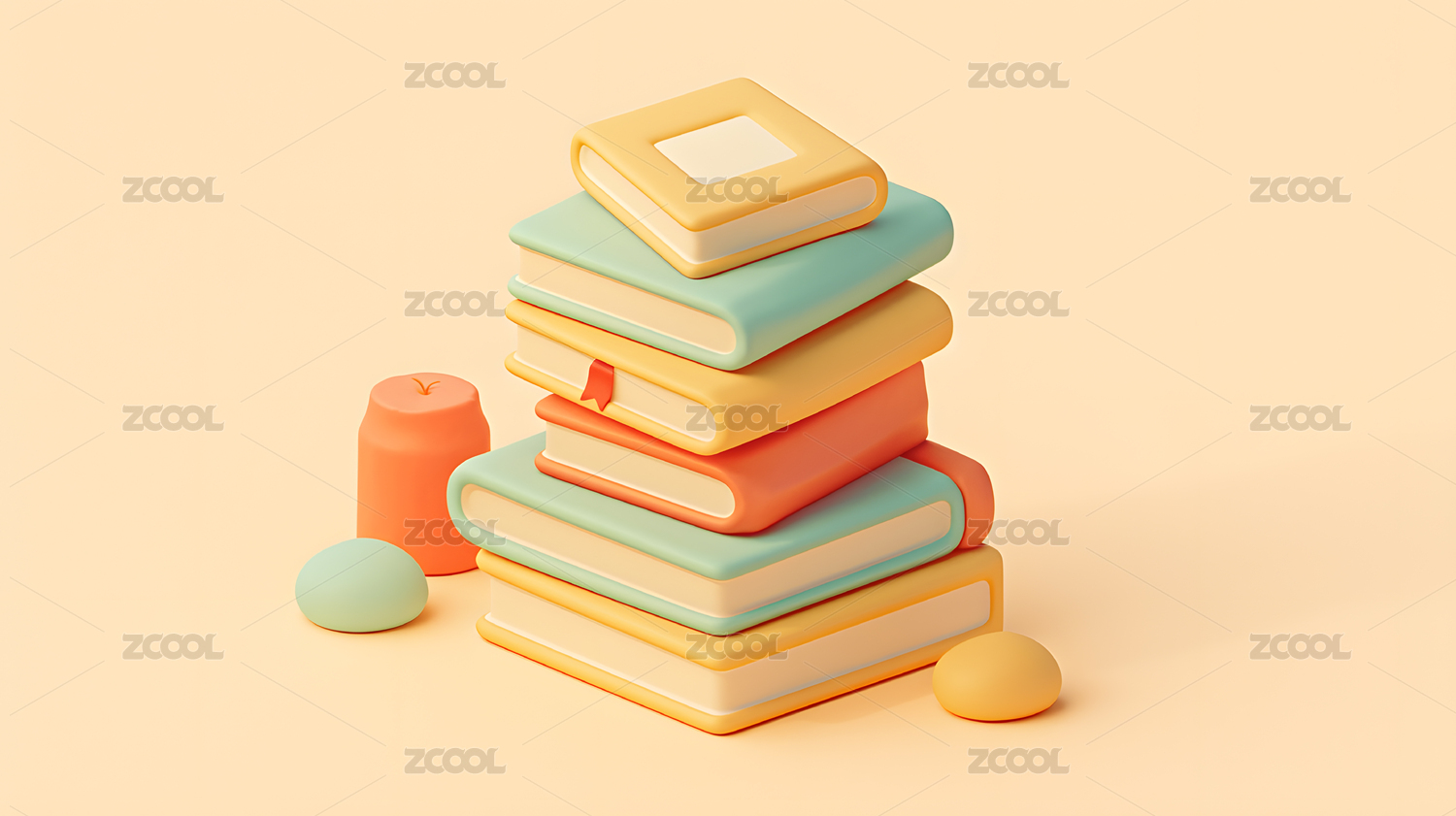 彩色书本堆叠三维插画