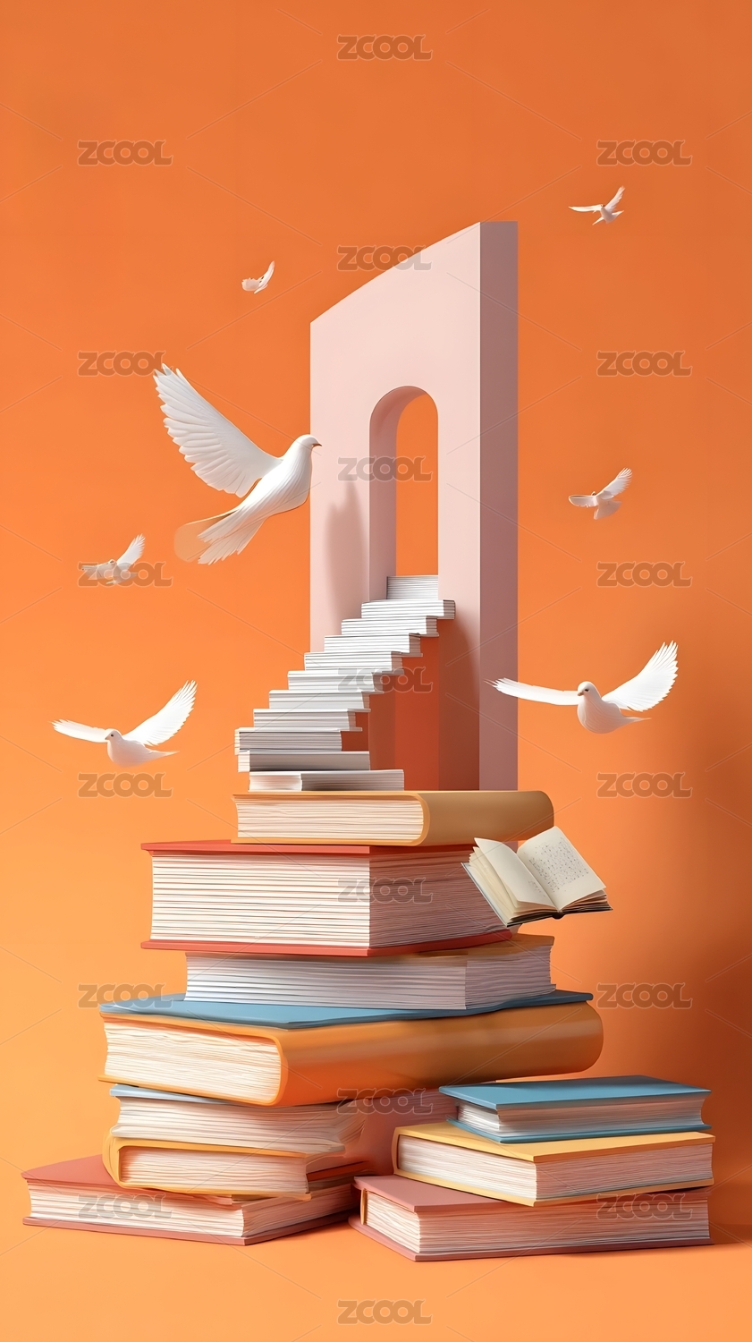 抽象的书籍堆象征着知识和教育