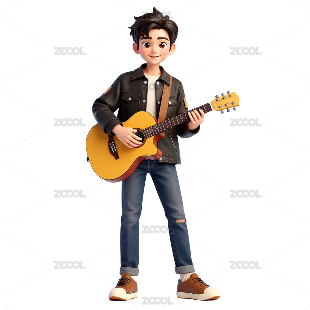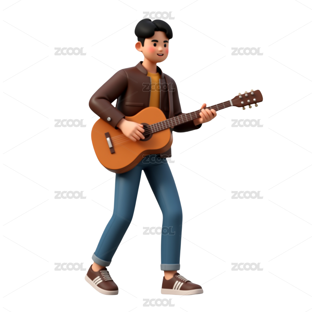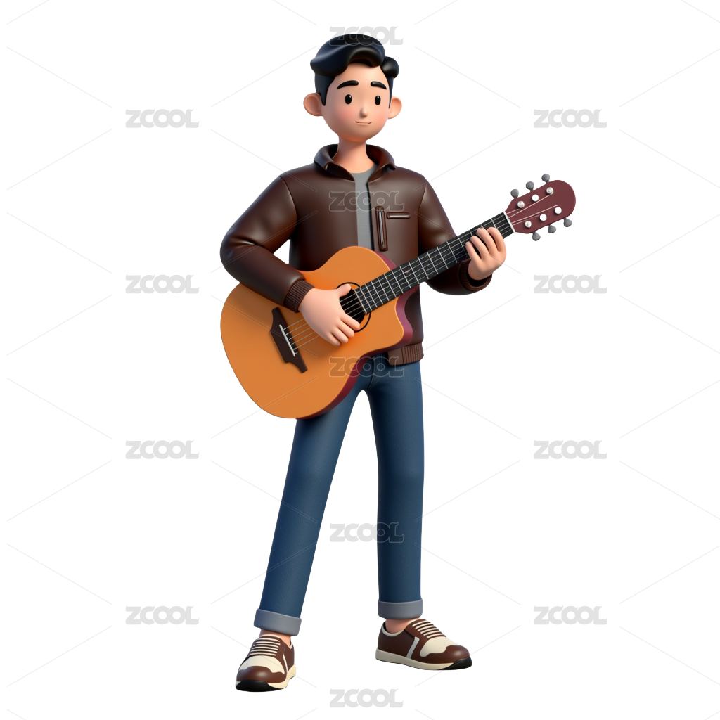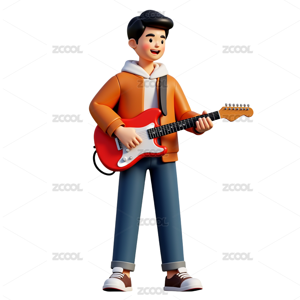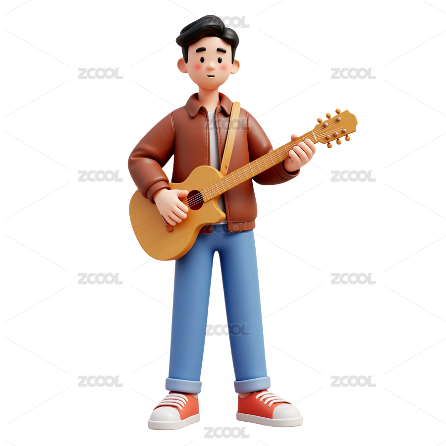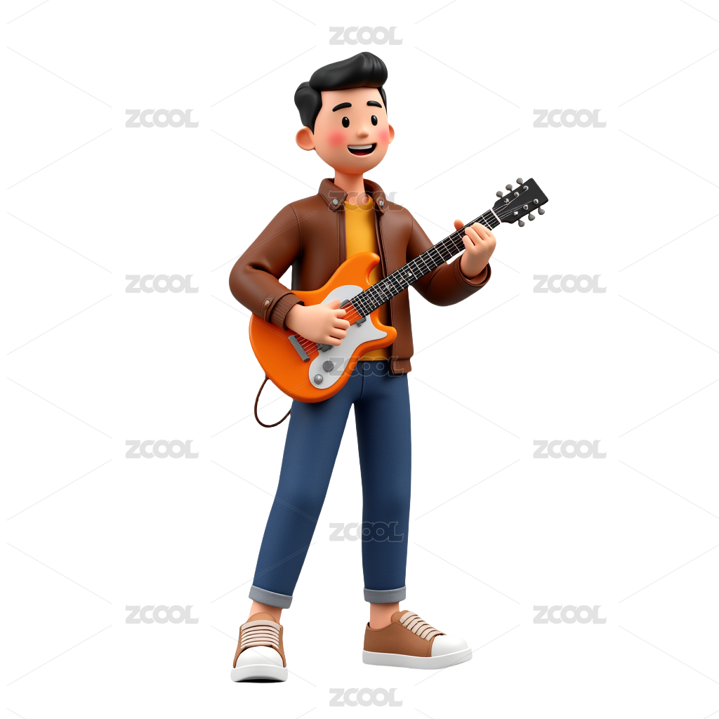 摇滚男孩在弹吉他3D人物插画素材