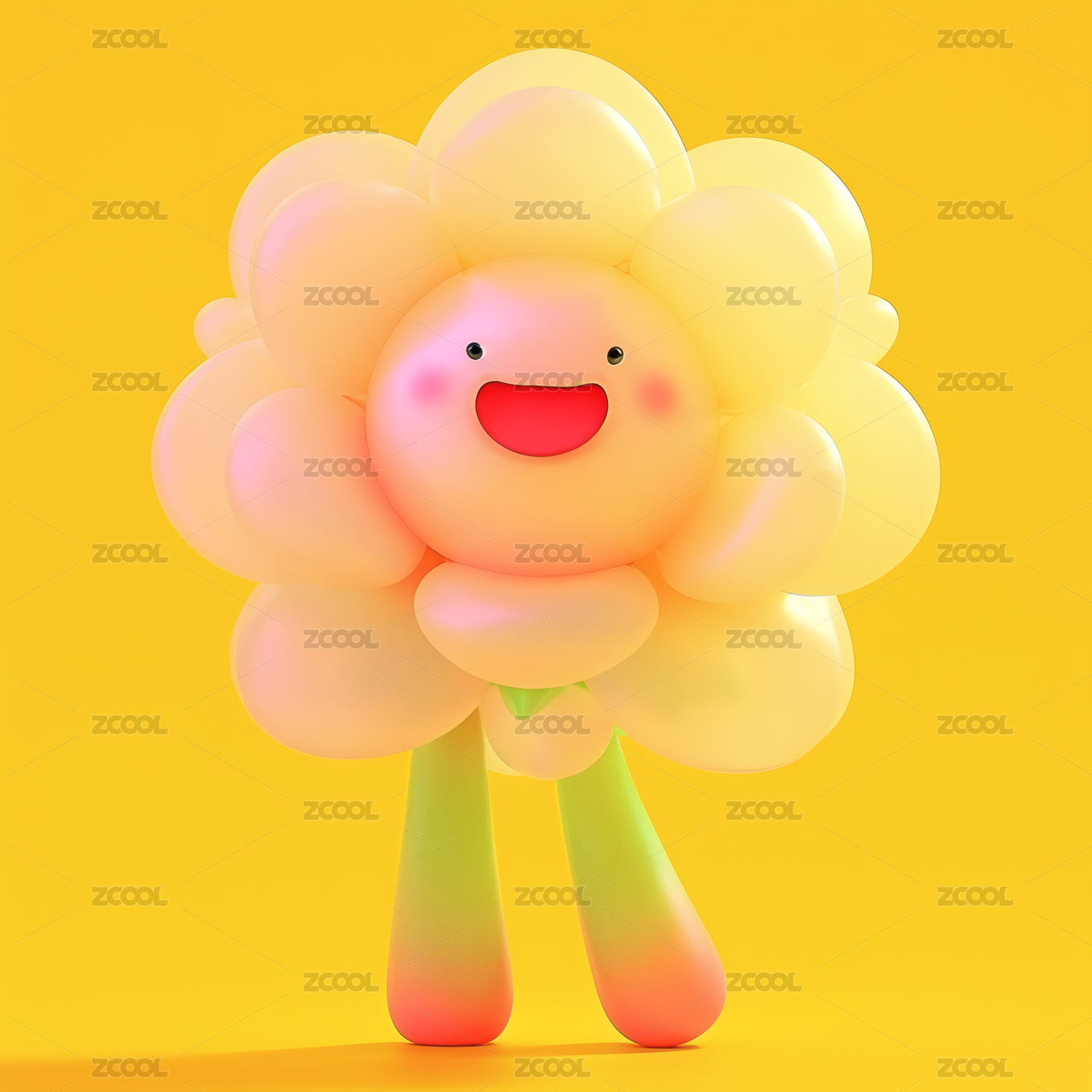 3d卡通可爱的拟人表情开心笑容的花