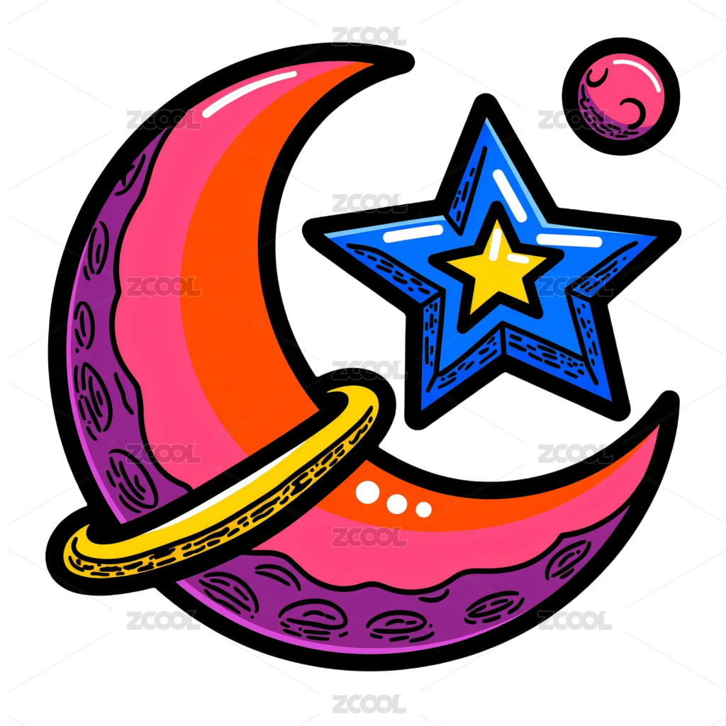 有着明亮月光和群星闪耀的夜空插画艺术设计