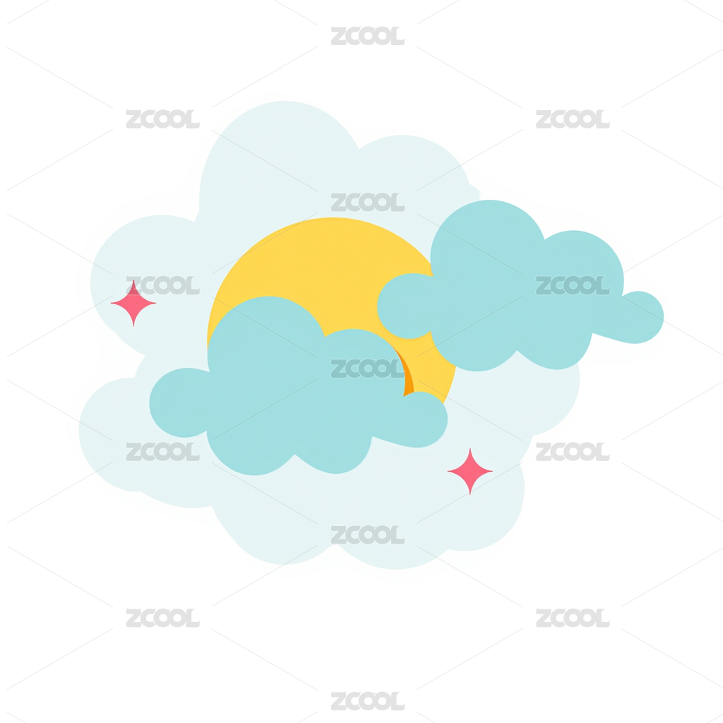 可爱的多云转晴天气小图标扁平风格PNG免抠图