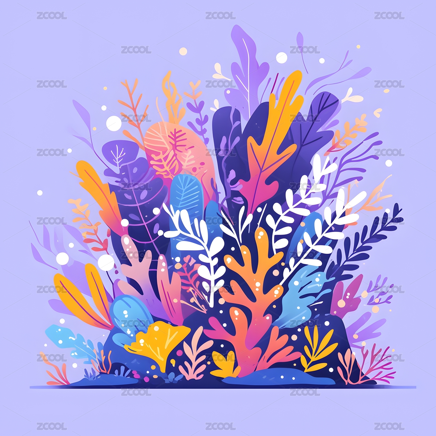 扁平化海底世界童趣珊瑚礁水草小场景背景