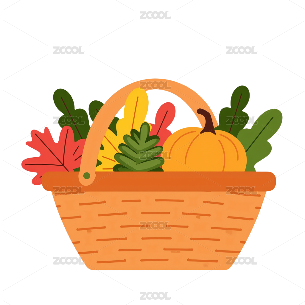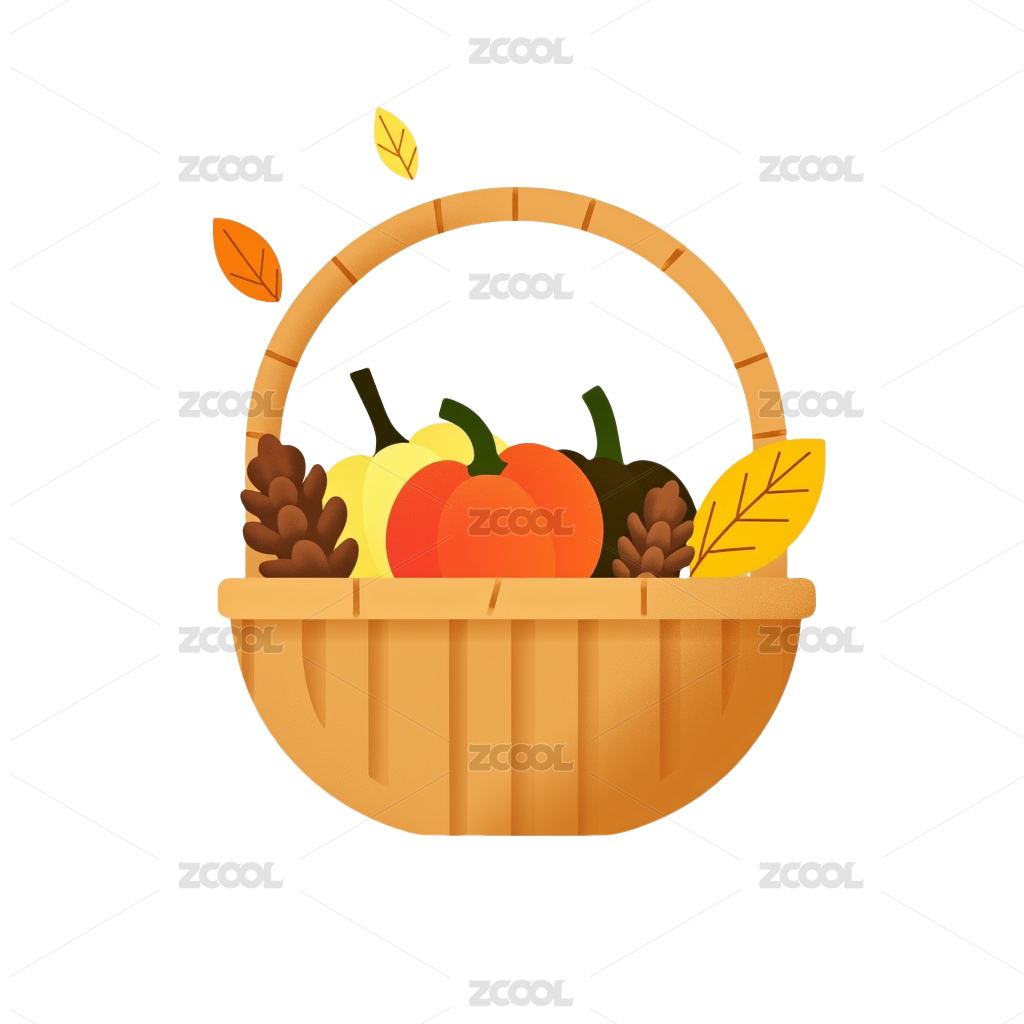 蔬菜茄子白菜胡萝卜辣椒香菇菜筐插画