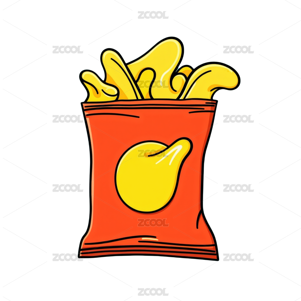 白背景桌上纸杯里的薯条手绘扁平水彩插画