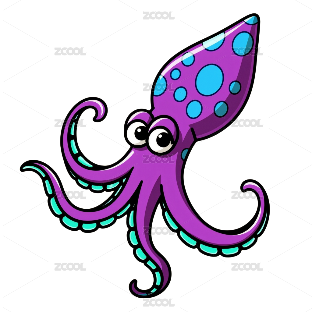 可爱海洋生物的插画萌趣章鱼的海洋探险