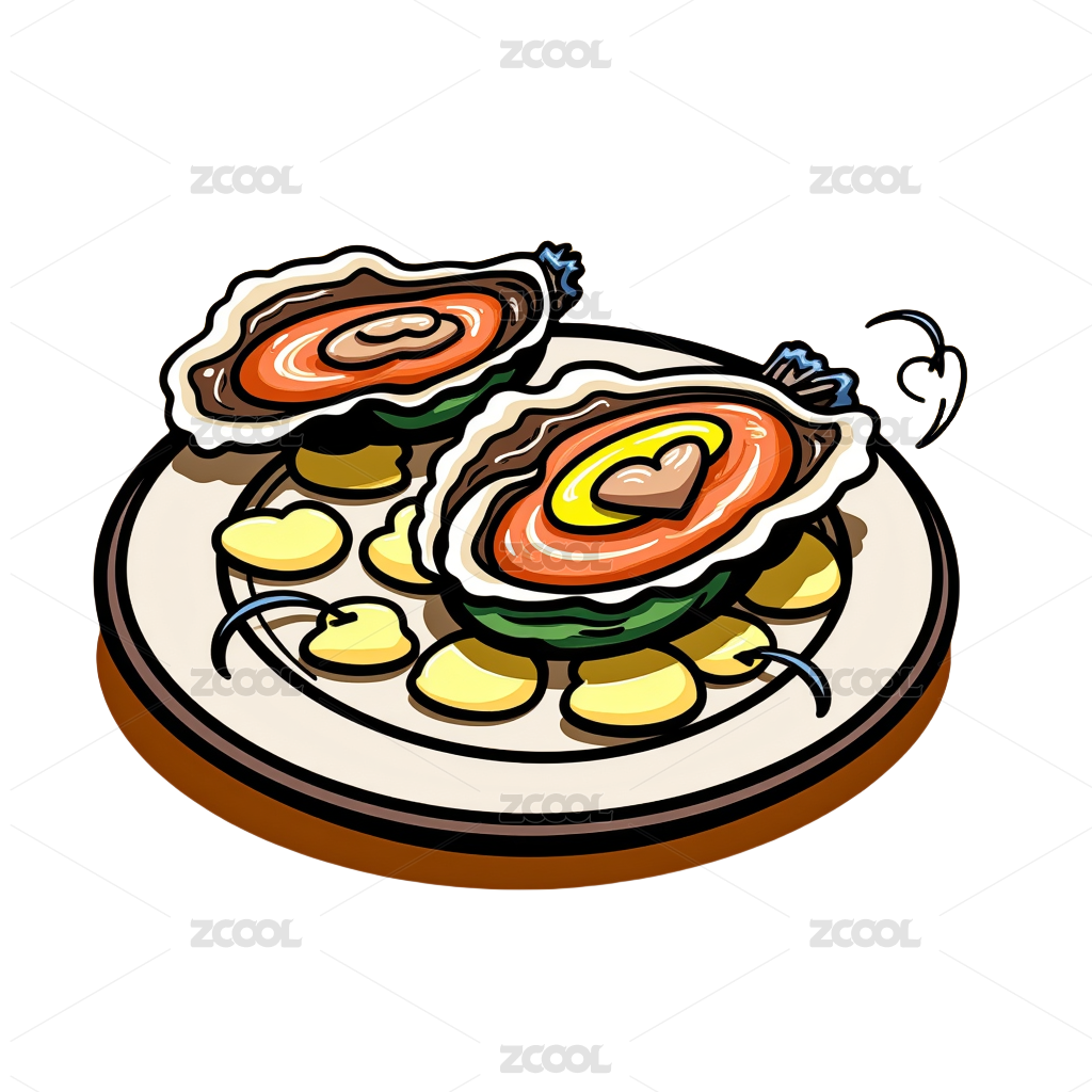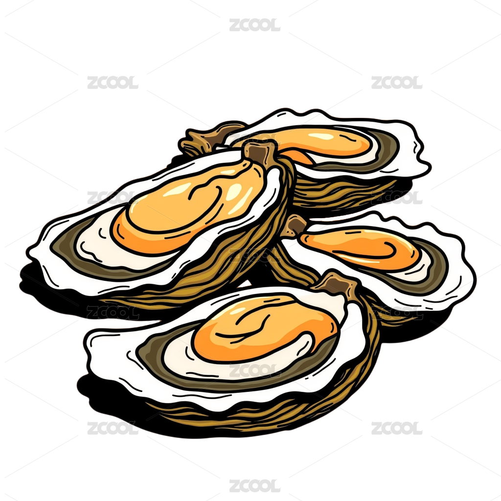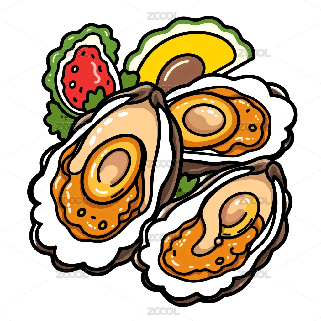 生蚝海鲜美食火锅烧烤矢量手绘插画