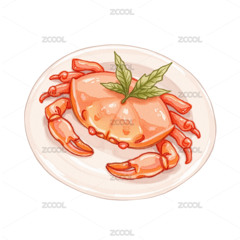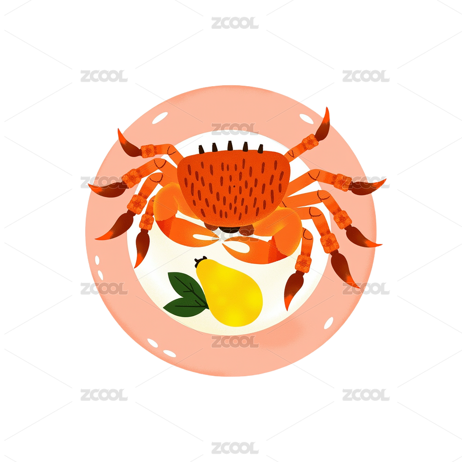 中秋节团圆赏月吃螃蟹月饼秋天美食国潮插画