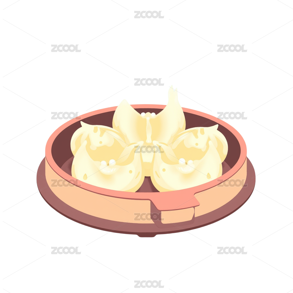 蓝色水彩写实冬至汤圆一盘水饺饺子和一叠