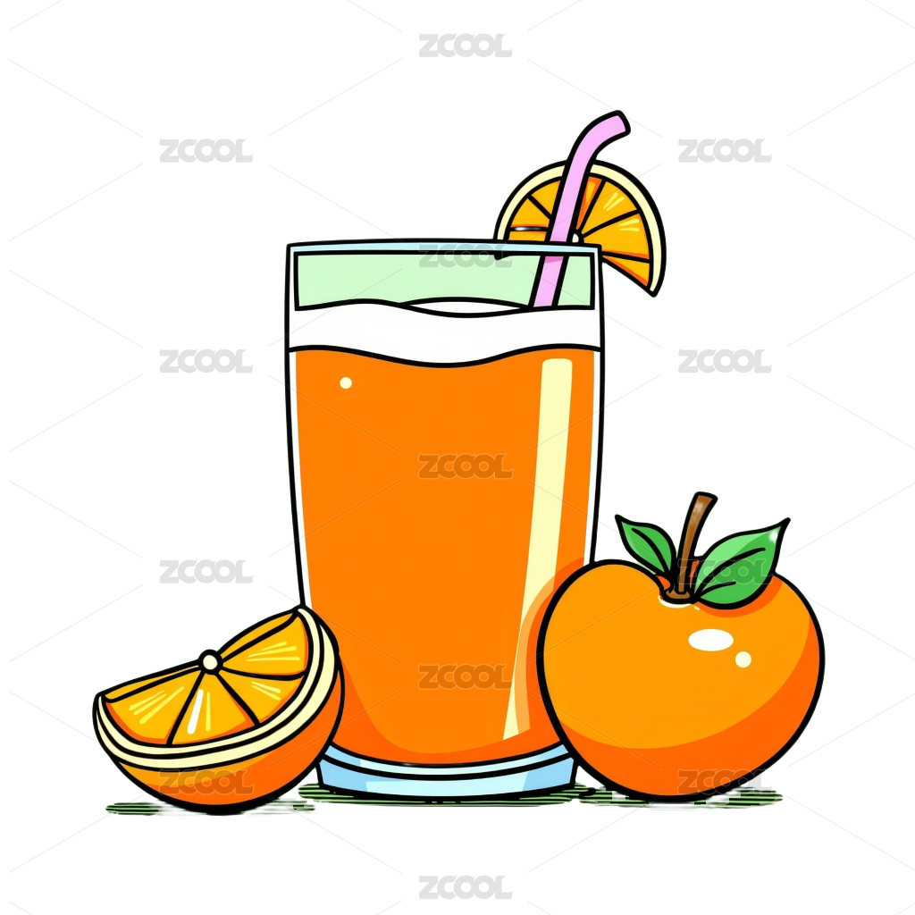 橙子片装饰果汁插画