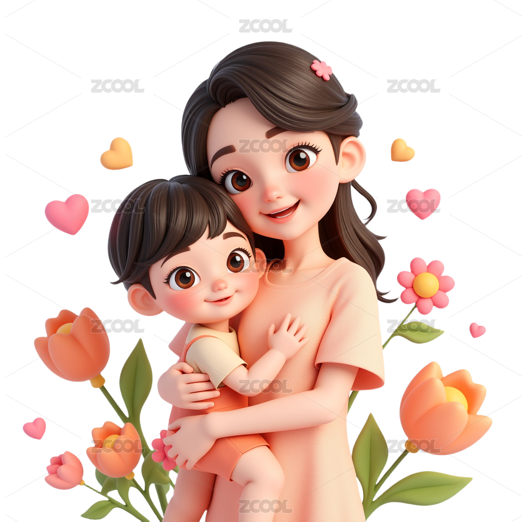 2款母亲节慈爱的妈妈拥抱女儿Png免抠素材3D风格