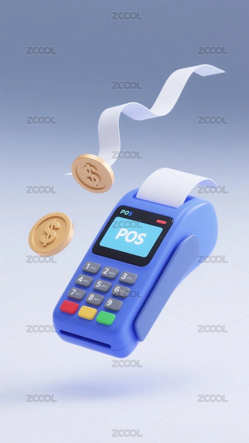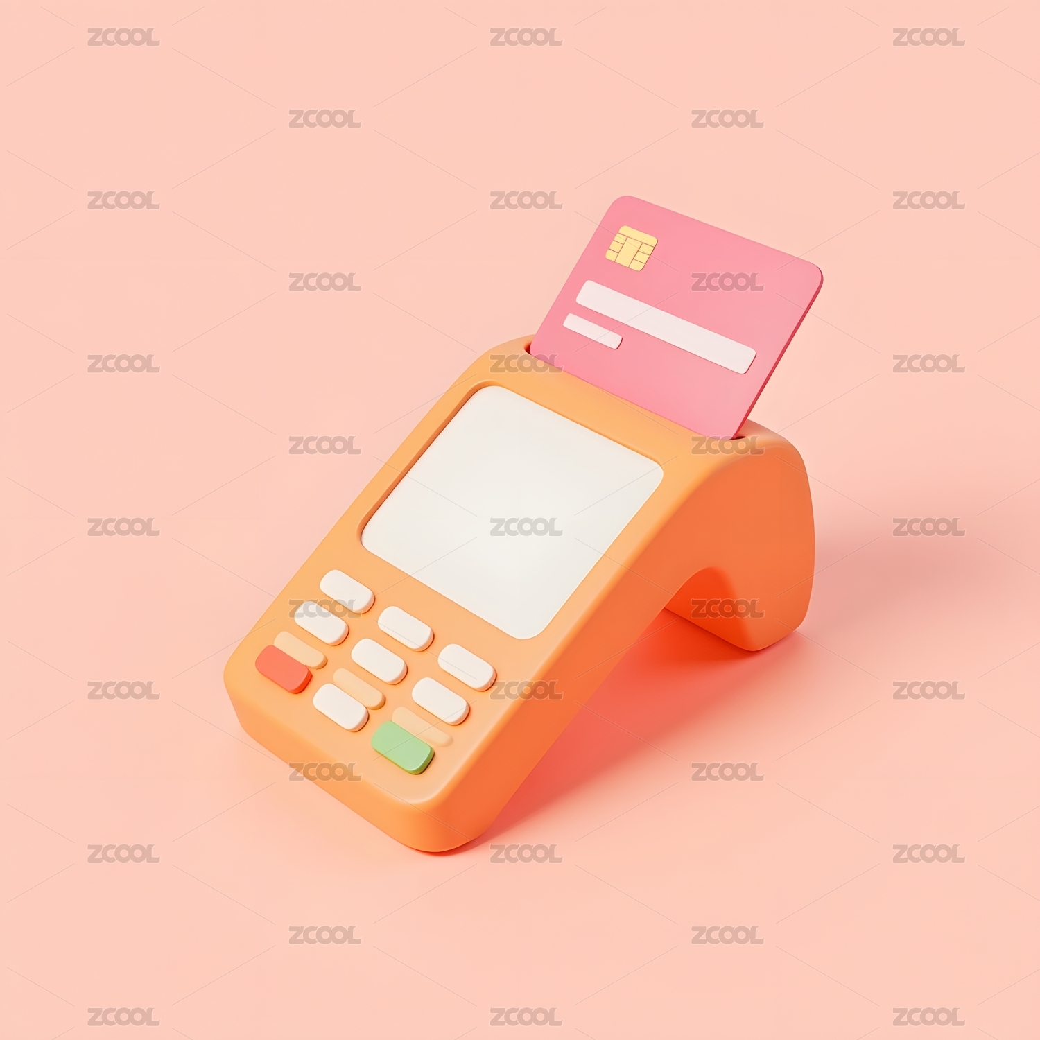 4款3D风格账单打印机支付结账买单PNG免抠素材