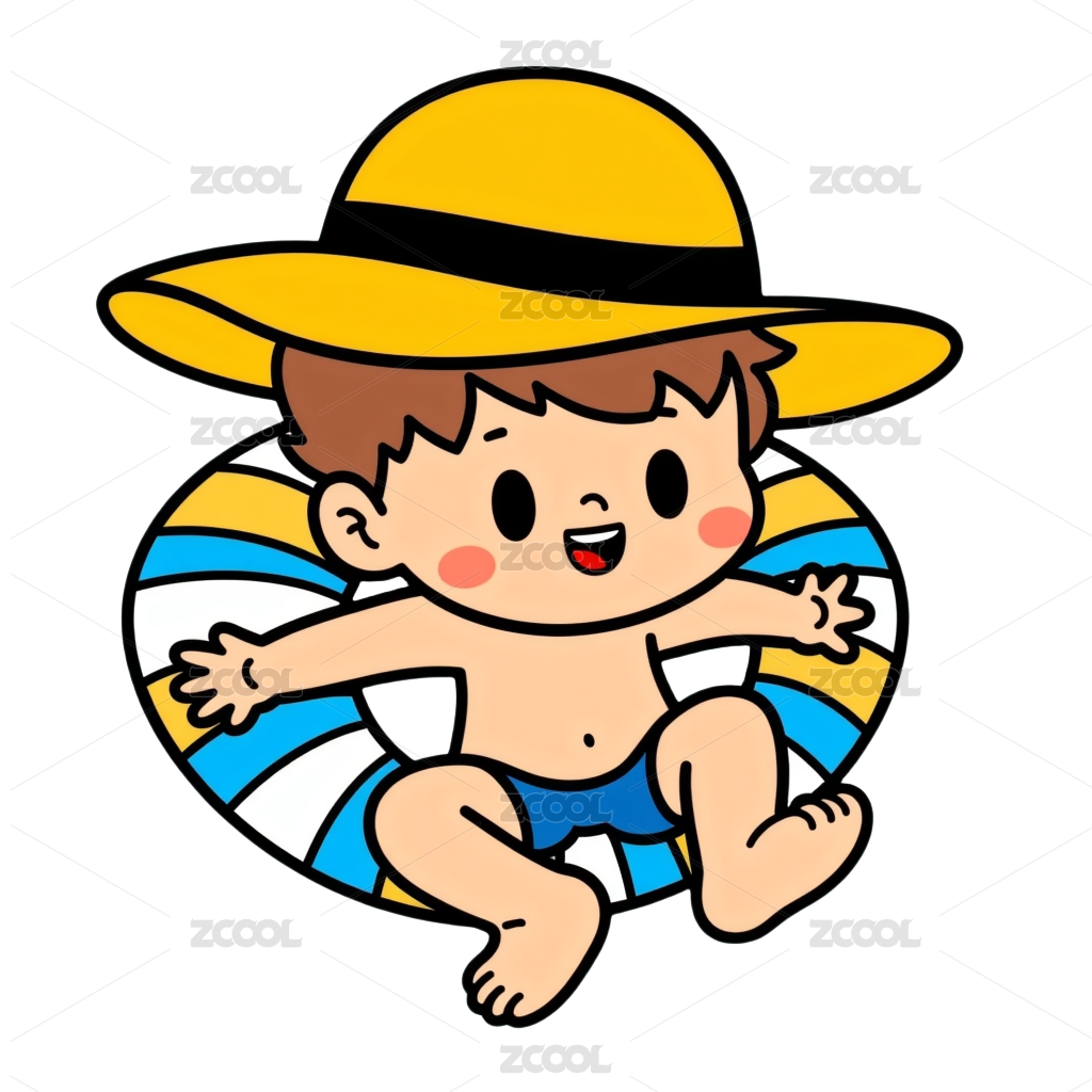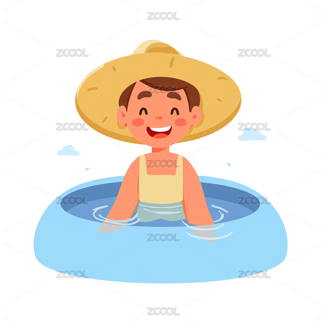 大暑节气儿童节小孩泳池游泳假期夏令营插画
