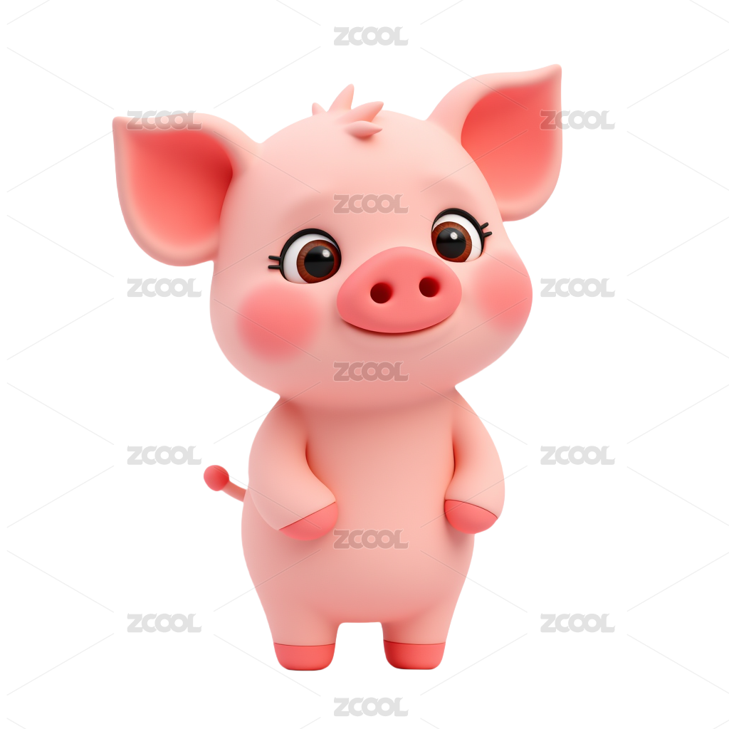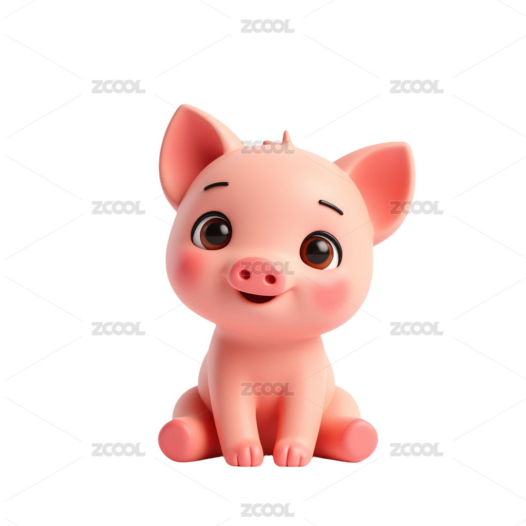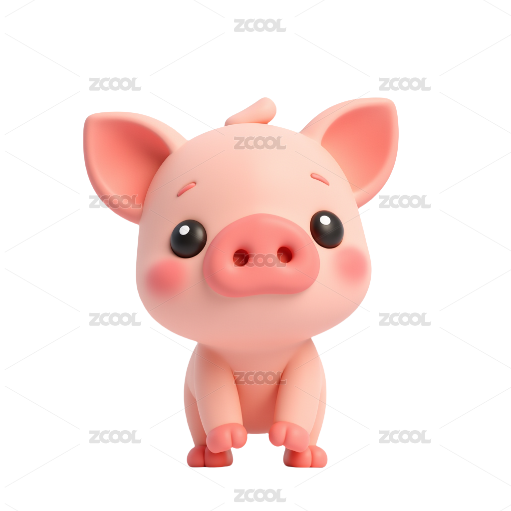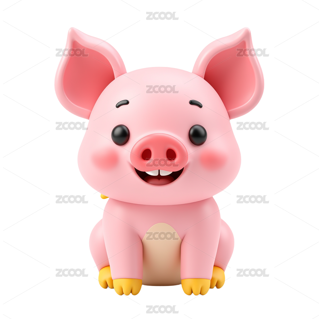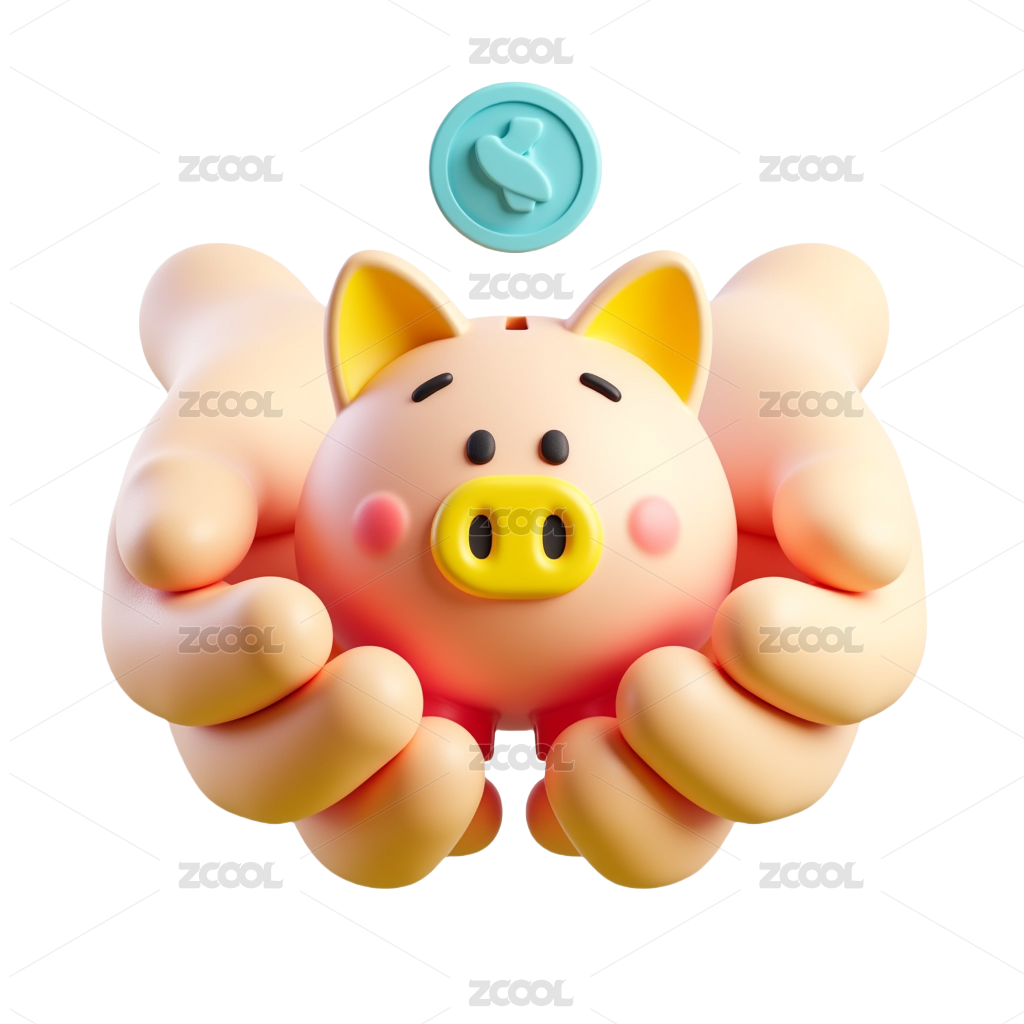 3d风格粉色小猪存钱储蓄罐和1个金币