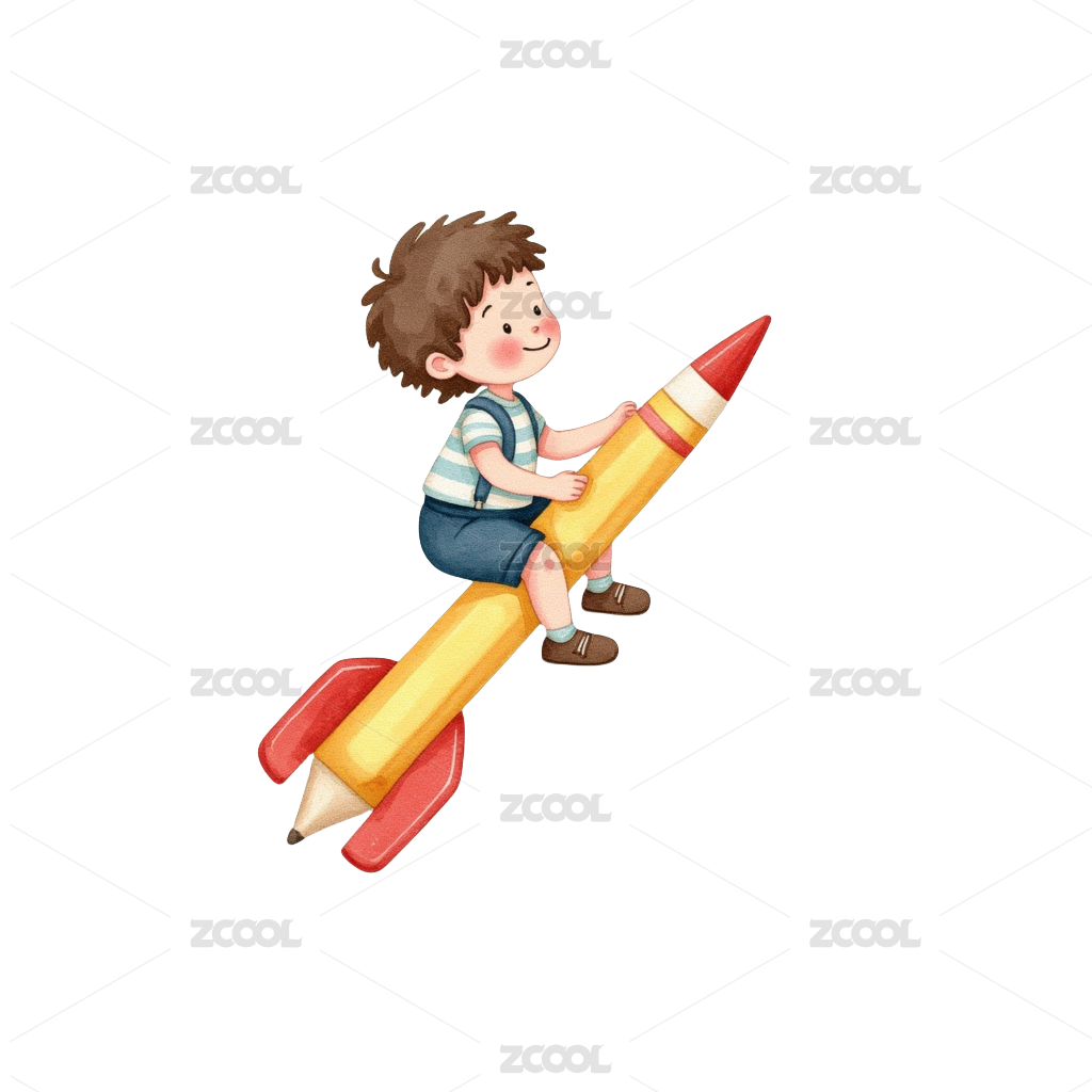 一个坐着火箭的男孩3d插画