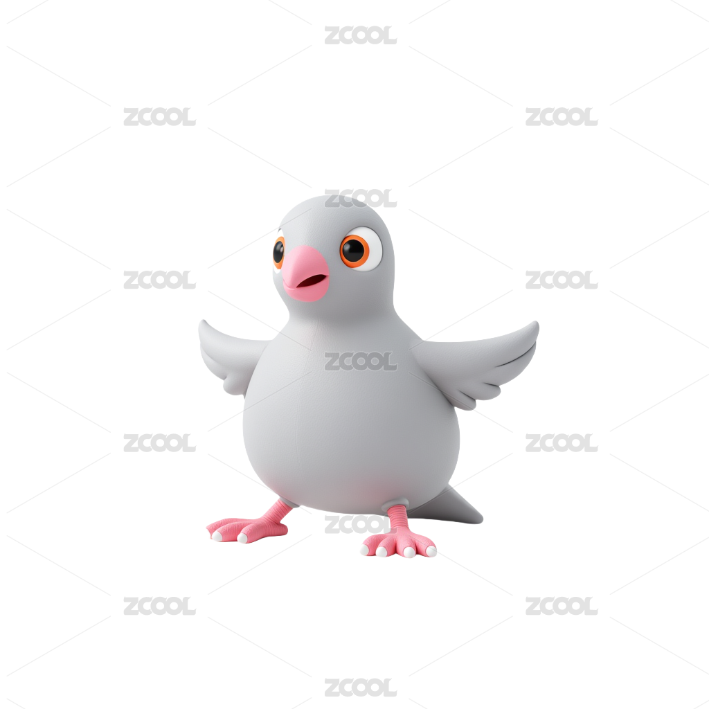 蓝色卡通鸽子站在白色平面上