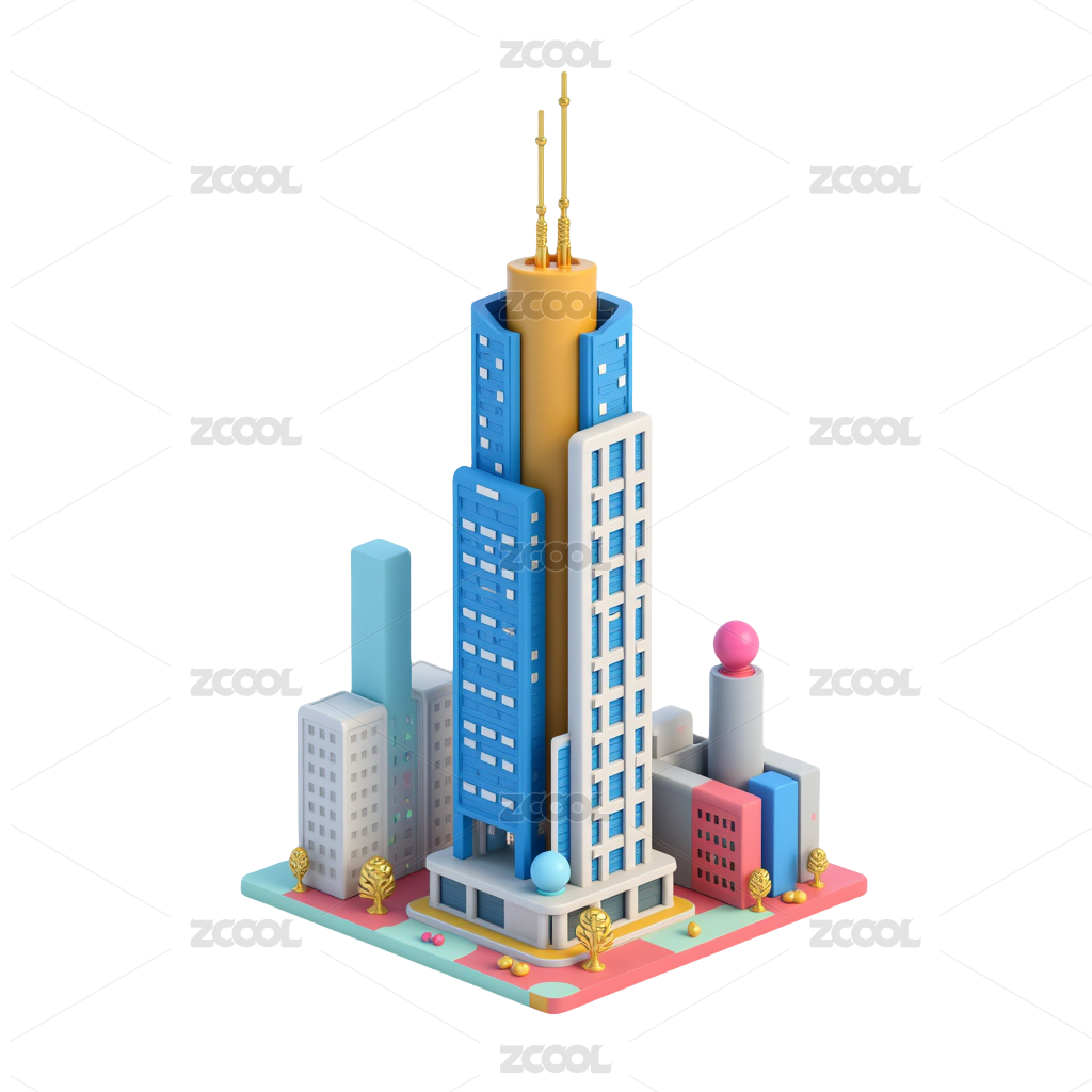 城市大厦建筑三维插画