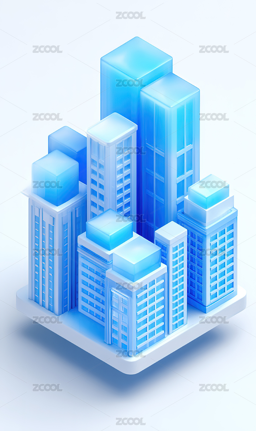 科技蓝色3D毛玻璃智慧城市图标