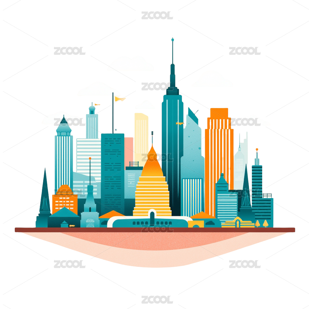 现代几何建筑装饰设计的扁平插画