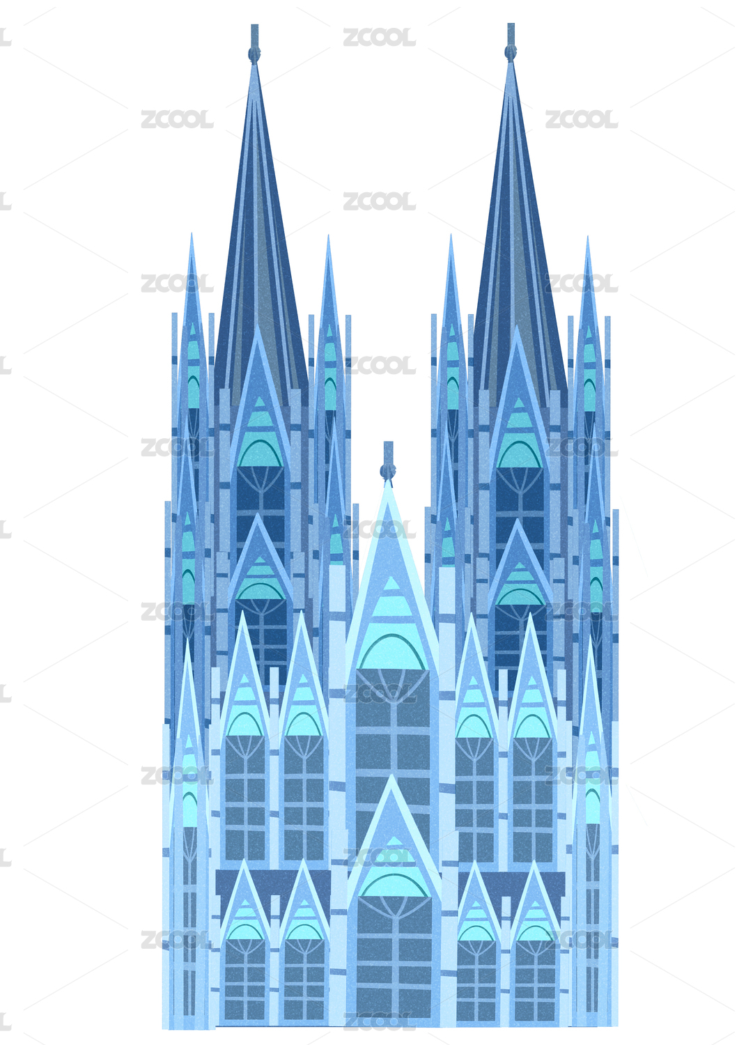 剪纸风格德国国家地标建筑科隆大教堂插画