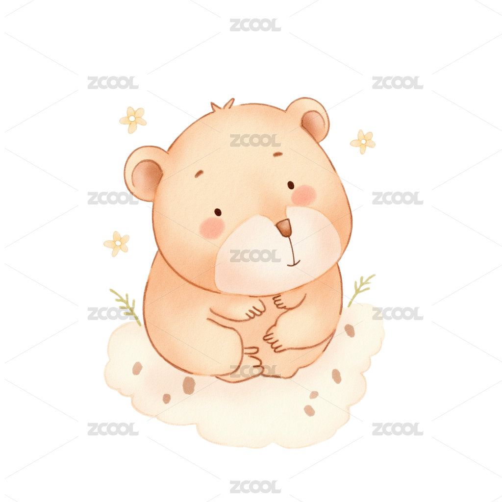 亮黄色唯美可爱玩具熊贝雷帽和小熊元素