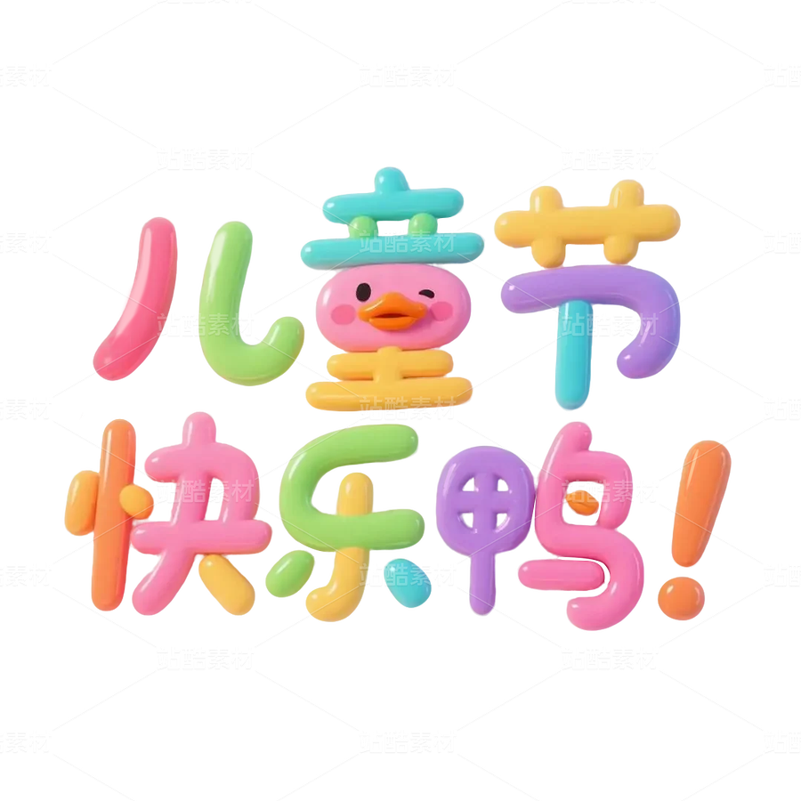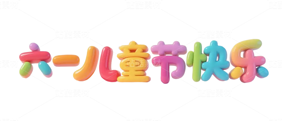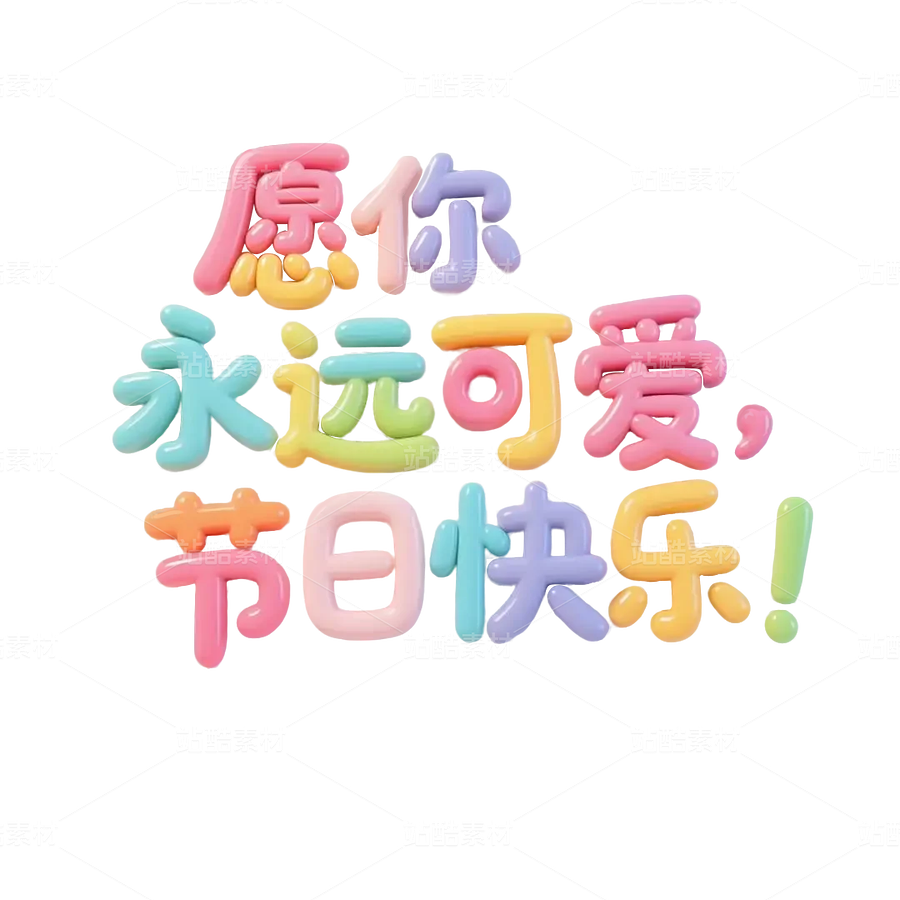 儿童节,圆润泡泡糖果渐变填充立体字,小星星,爱心