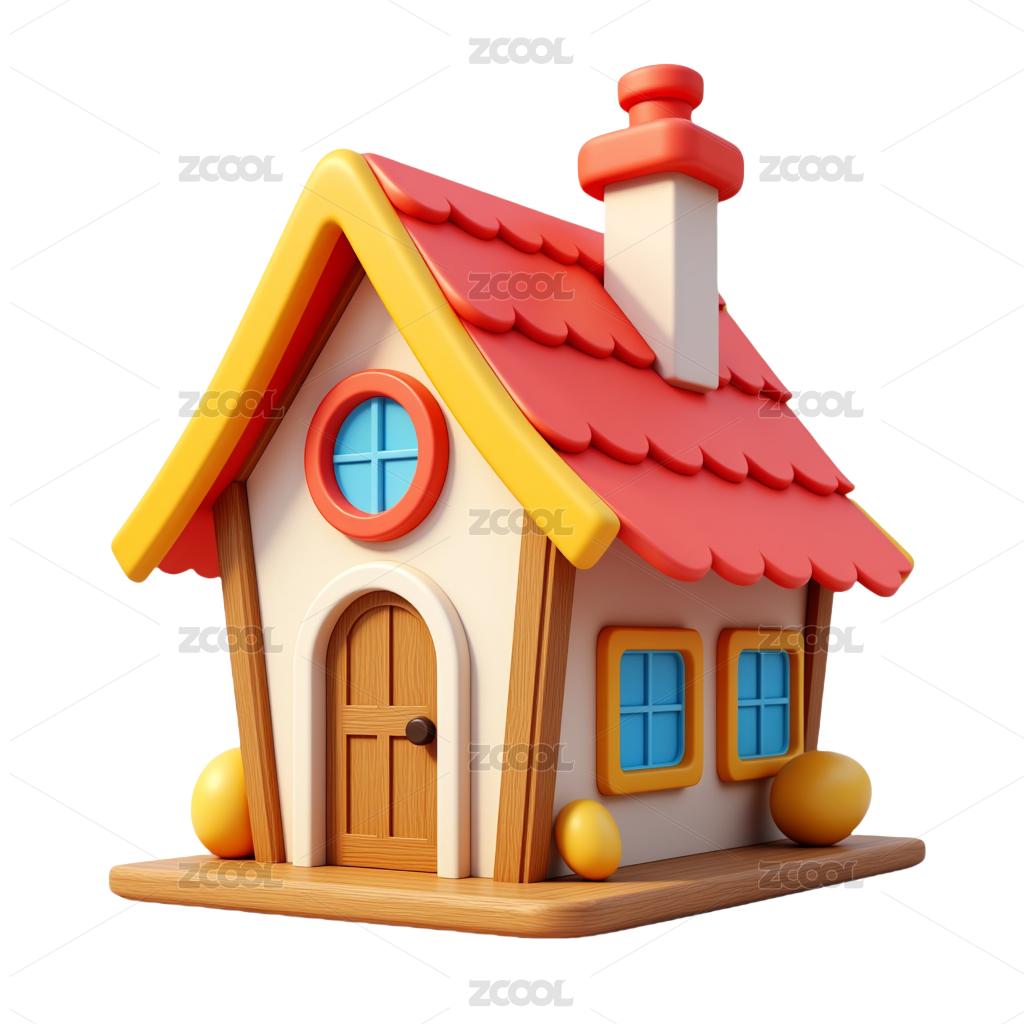 3d卡通房屋建筑房子图标