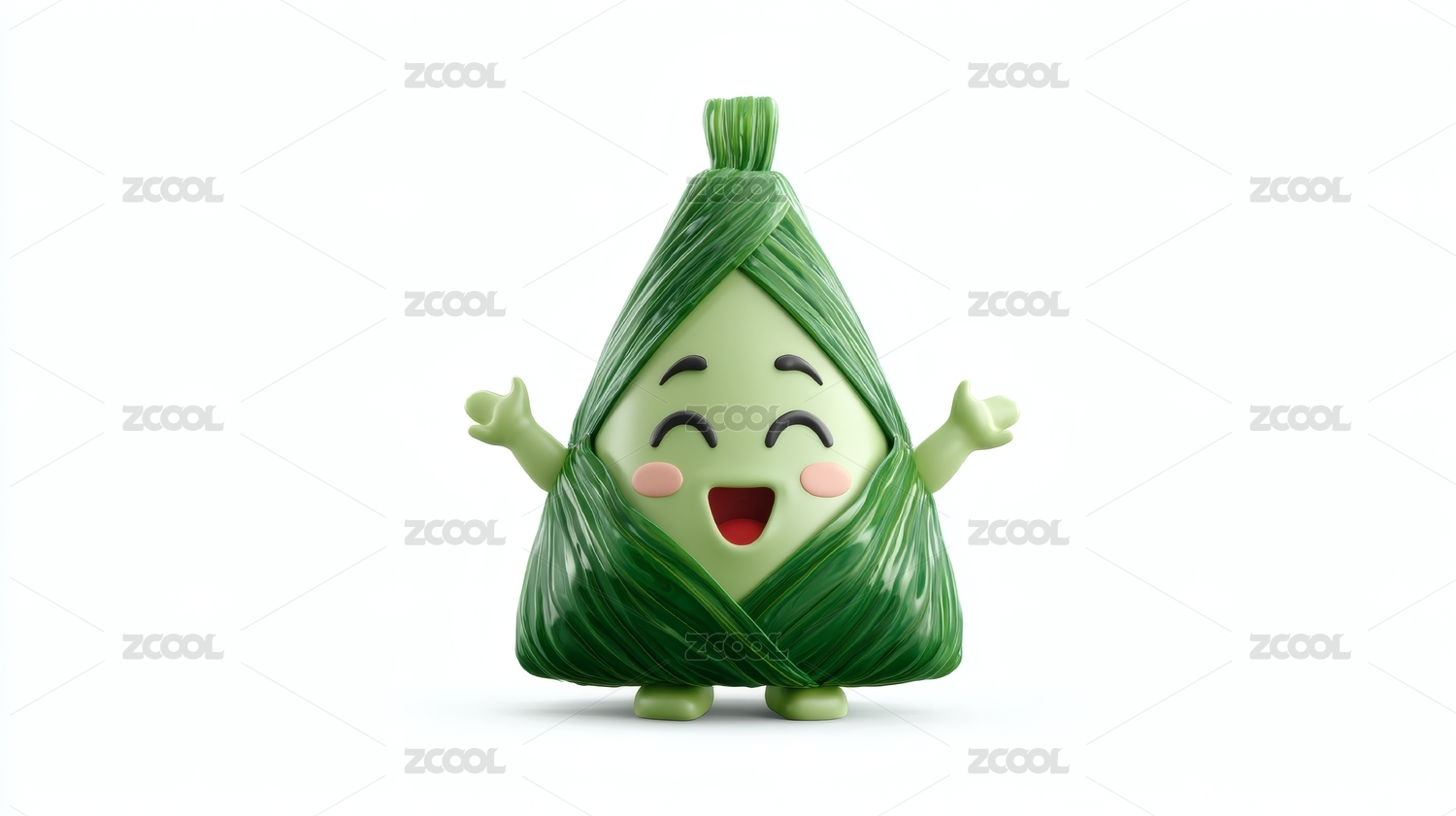 卡通粽子欢快起舞绿色系