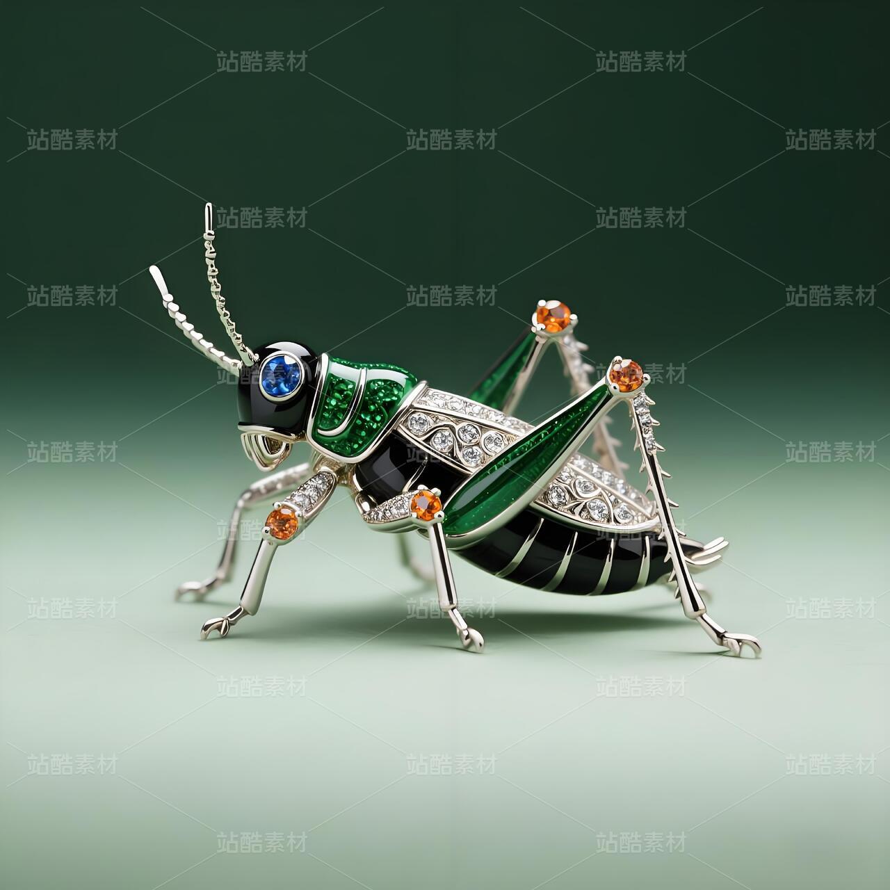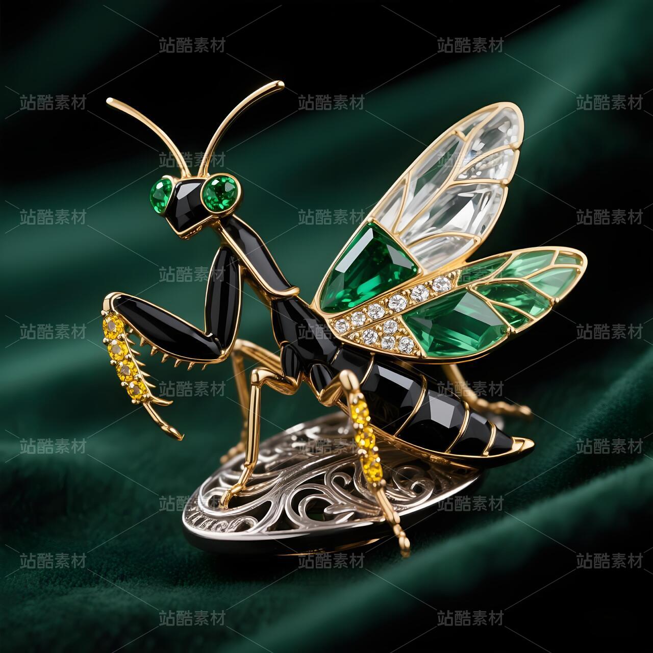 昆虫系列顶级高定西服胸针珠宝纹样设计图,维持精致华丽的珠宝摄影风格,借助细腻光影和色彩展现珠宝璀璨。