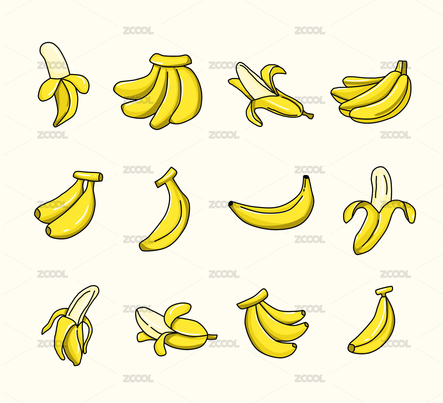 花生瓜子苹果梨香蕉橙子水果icon矢量图