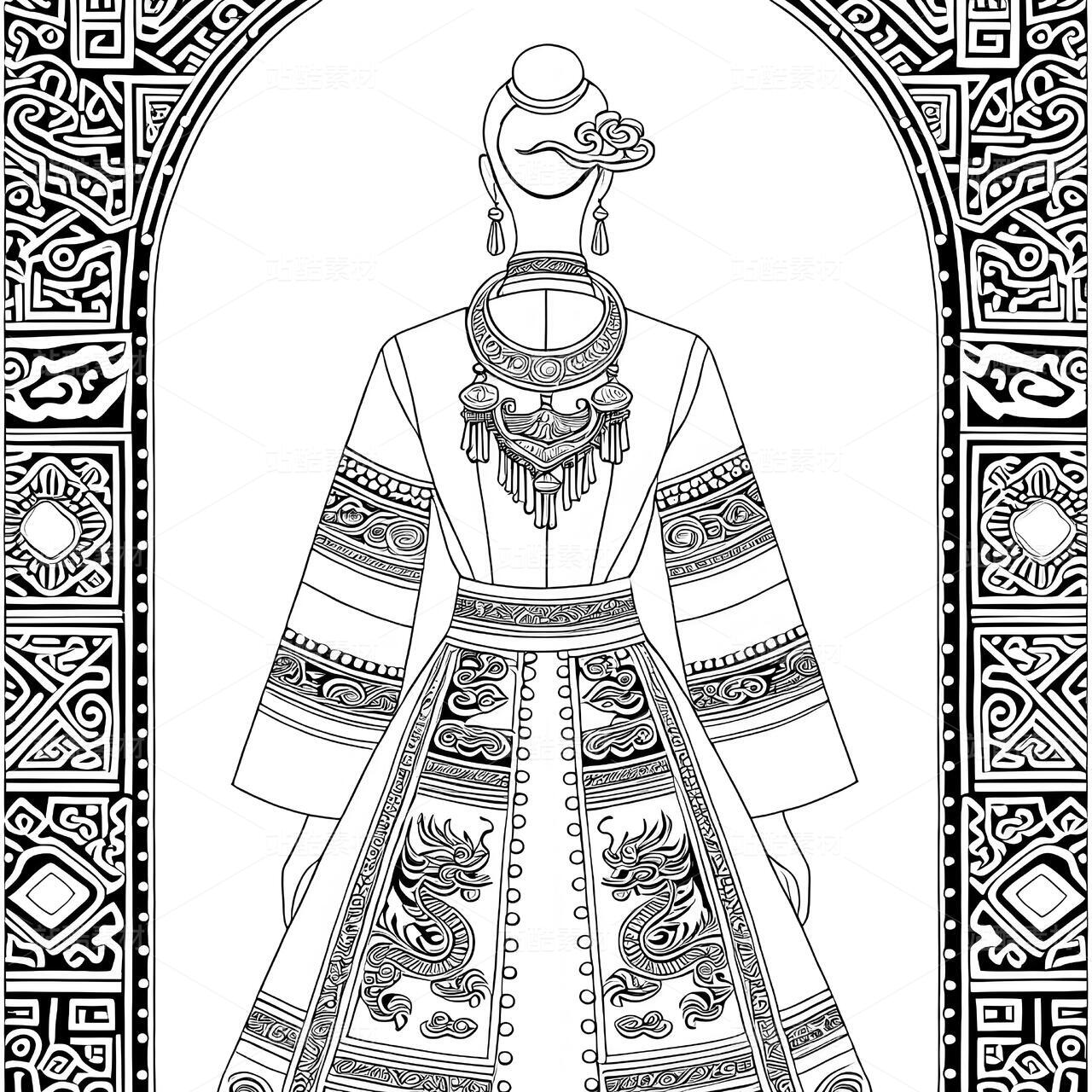 渐变朱砂色真丝绡沿着藻井斗拱结构层叠铺展,每道2.3cm宽的褶皱精确对应原始壁画的叠涩比例。肩部运用非遗锁绣技法再现千佛纹,0.1mm银线勾勒的佛像轮廓在灯光下若隐若现。