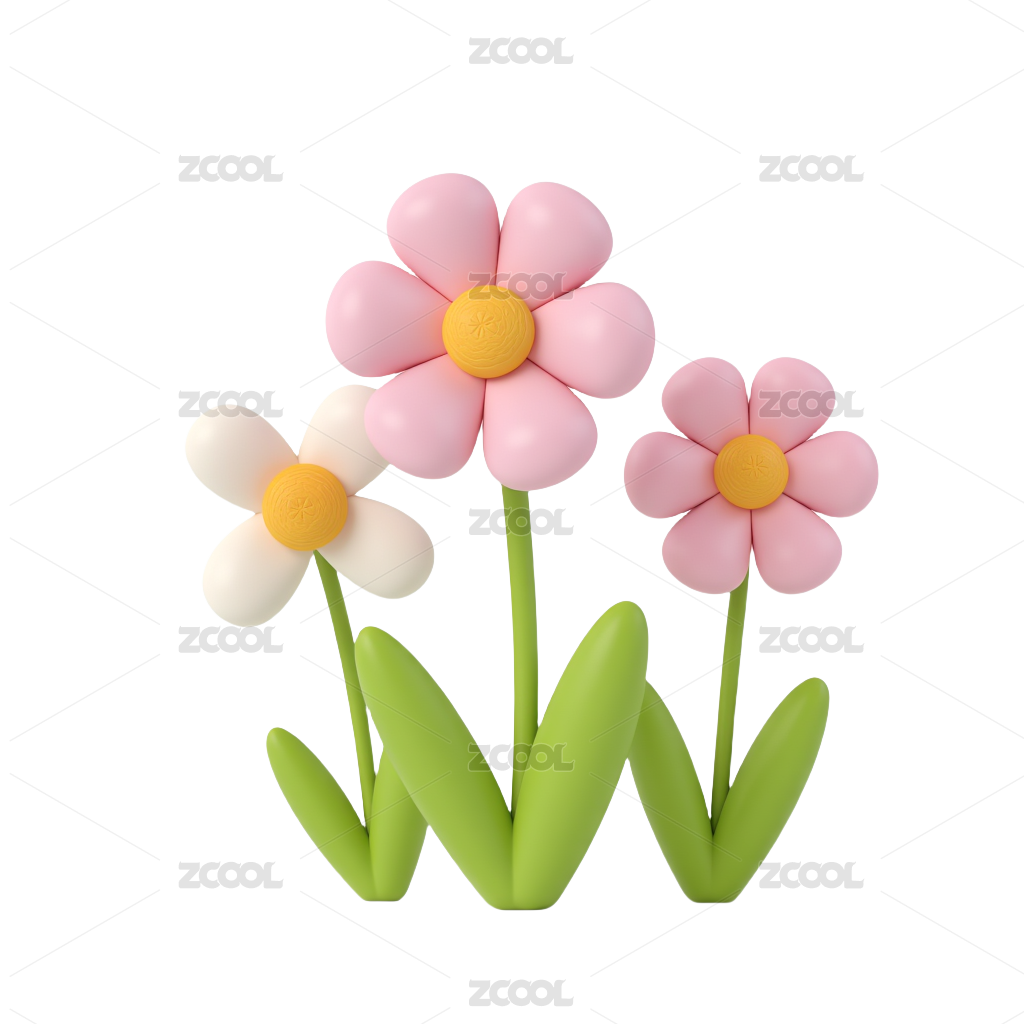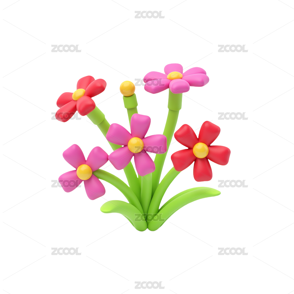 「爱」3D渲染 鲜花 春天植物 装饰通用免抠PNG