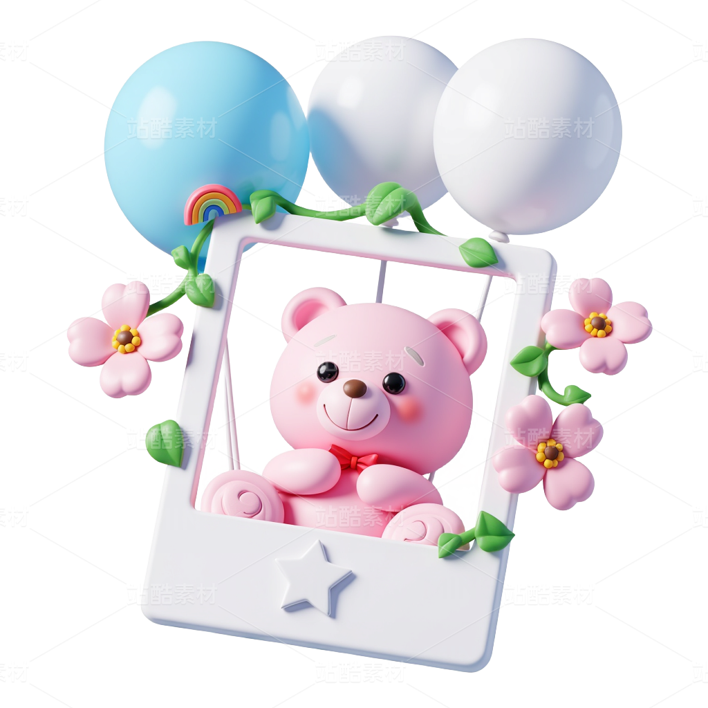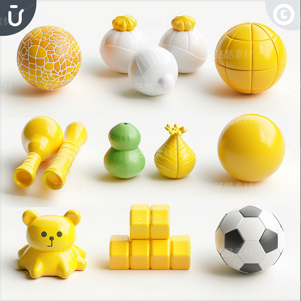 c4d风格儿童玩具素材,小熊,小火箭,小鸭,小皮球,琴