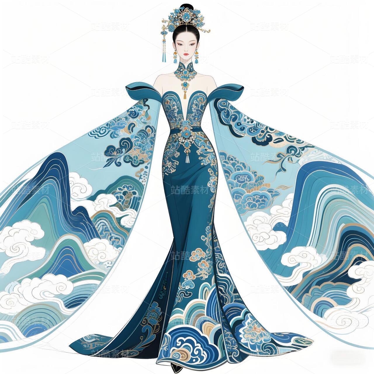 绝美设计手稿首曝!《千里江山图》穿在身上是什么体验