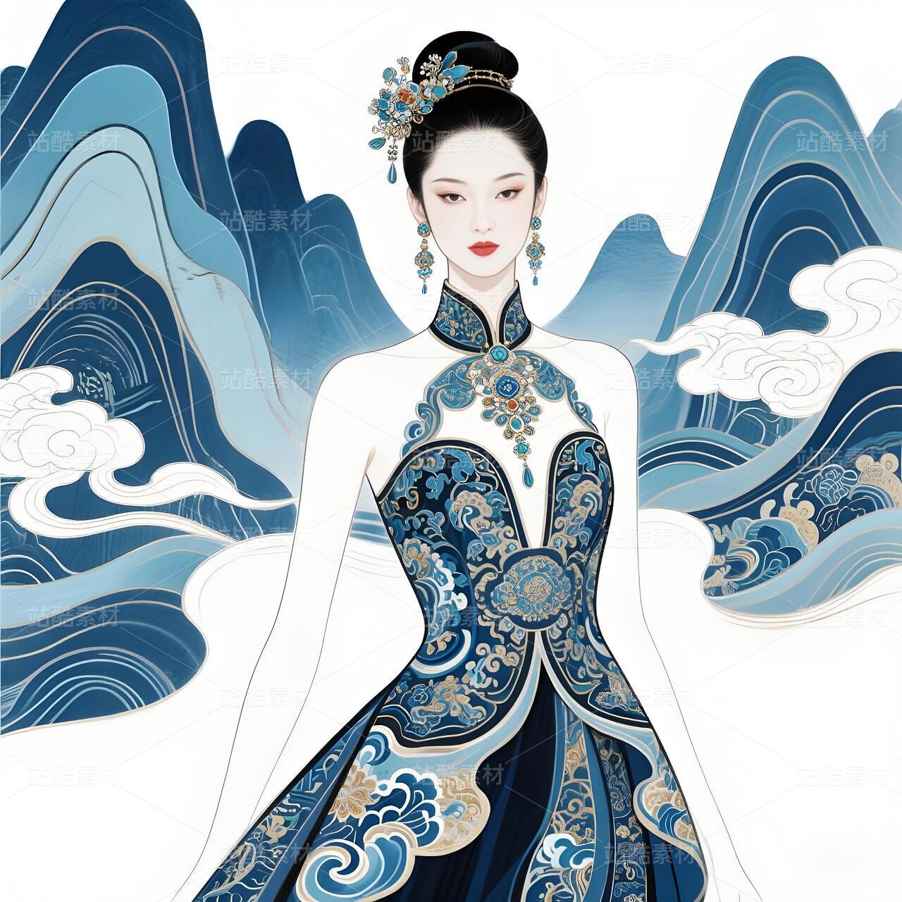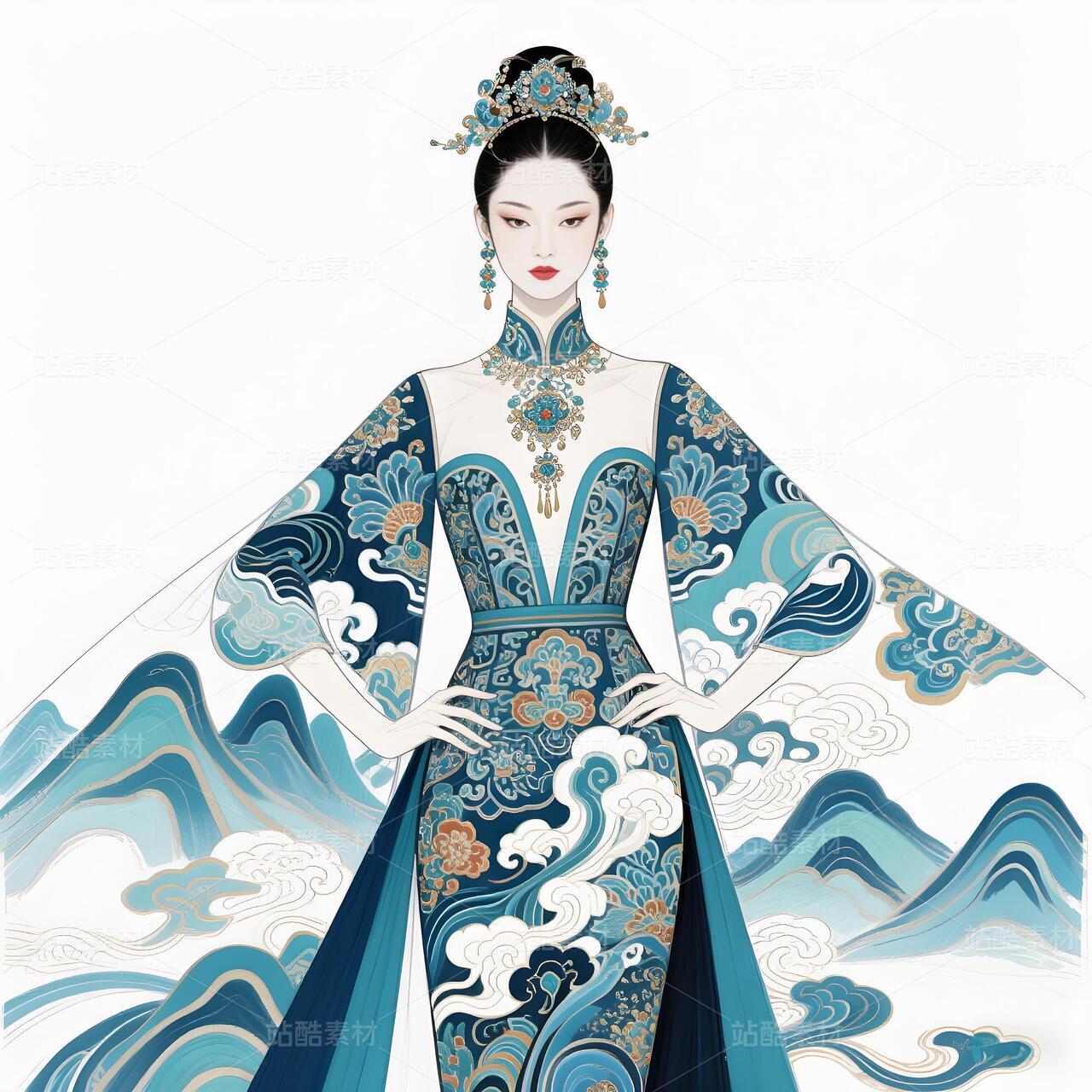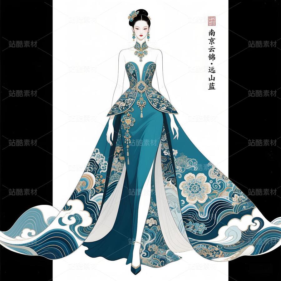 南京云锦非遗技法撞上宋徽宗的青绿山水——💫 这件「远山青」礼服手稿美到窒息!渐变黛青色织金云纹似山岚流动,裙摆暗藏《千里江山图》皴笔线条,腰间银丝盘扣竟用微缩云锦残片镶嵌!💎 更绝的是可拆卸披风,展开即是半幅水墨金陵图,连耳坠都复刻了云锦提花木机纹理~