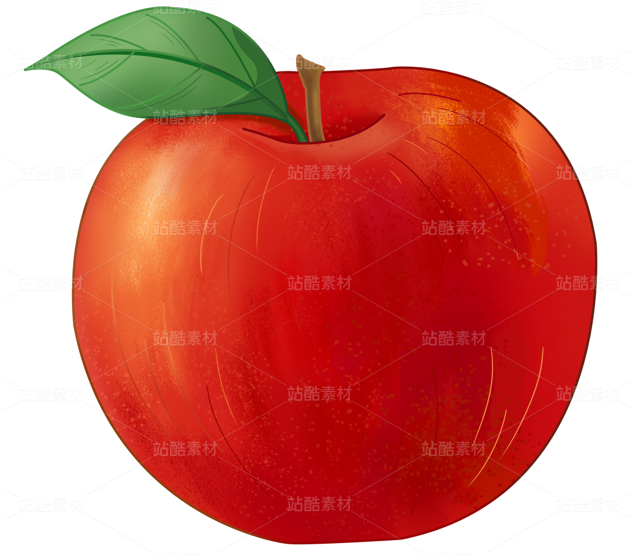 手绘国潮风一个鲜艳的红苹果免抠元素